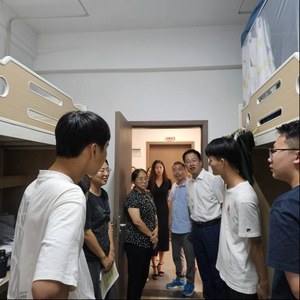 会议结束后,院领导带领辅导员、各班班主任前往学生宿舍,关心和慰问学生入住情况,老师们和蔼地和学生、家长唠家常,并强调了在校期间注意安全,希望大家在接下来的军训中能够锻炼意志,增强团结协作意识,把军训精神发扬下去。