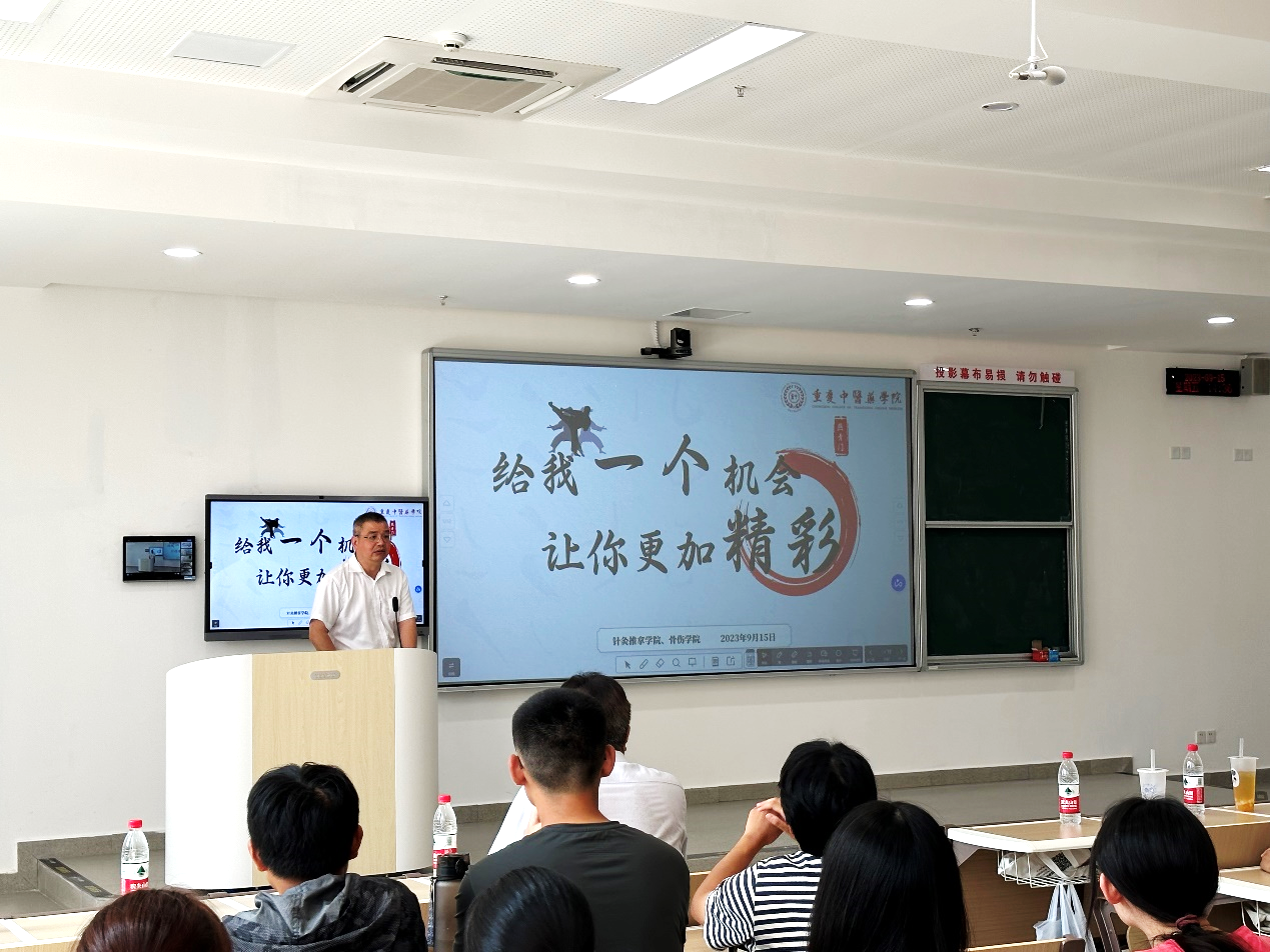 9月15日,taptap点点官方网站针灸推拿学院、骨伤学院邀请重庆市国家级非物质文化遗产项目“燕青门正骨疗法”团队来校,为taptap点点针灸推拿学、中医骨伤科学专业的大一新生开展了以“给我一次机会,让你更加精彩”为主题的第二课堂开学第一课。