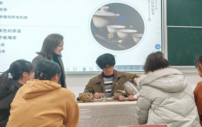 王辉武教授的演讲在同学们热烈地的掌声中落下帷幕,而下一位讲者——高级茶艺师唐俊蕾,她用手中的茶叶编织起一篇篇茶香浓郁的诗章,带领我们走进茶的雅致世界,细品那一幕幕关于茶的故事。