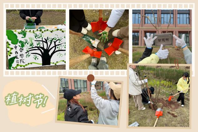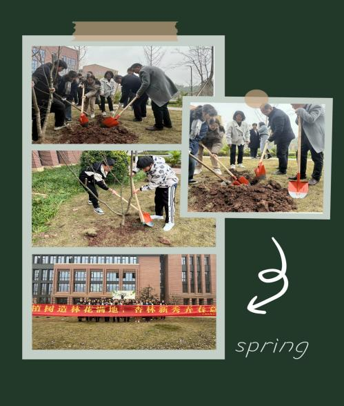 植树现场,大家分工协作,齐心协力栽种树苗、挥锨培土、浇水灌溉、扶苗踩实,种下了一棵棵希望之树。同学们还为新种的小树苗挂上富有寓意的名字,如“落月摇情满江树”“晴川历历汉阳树”等,以寄托他们的美好愿景。