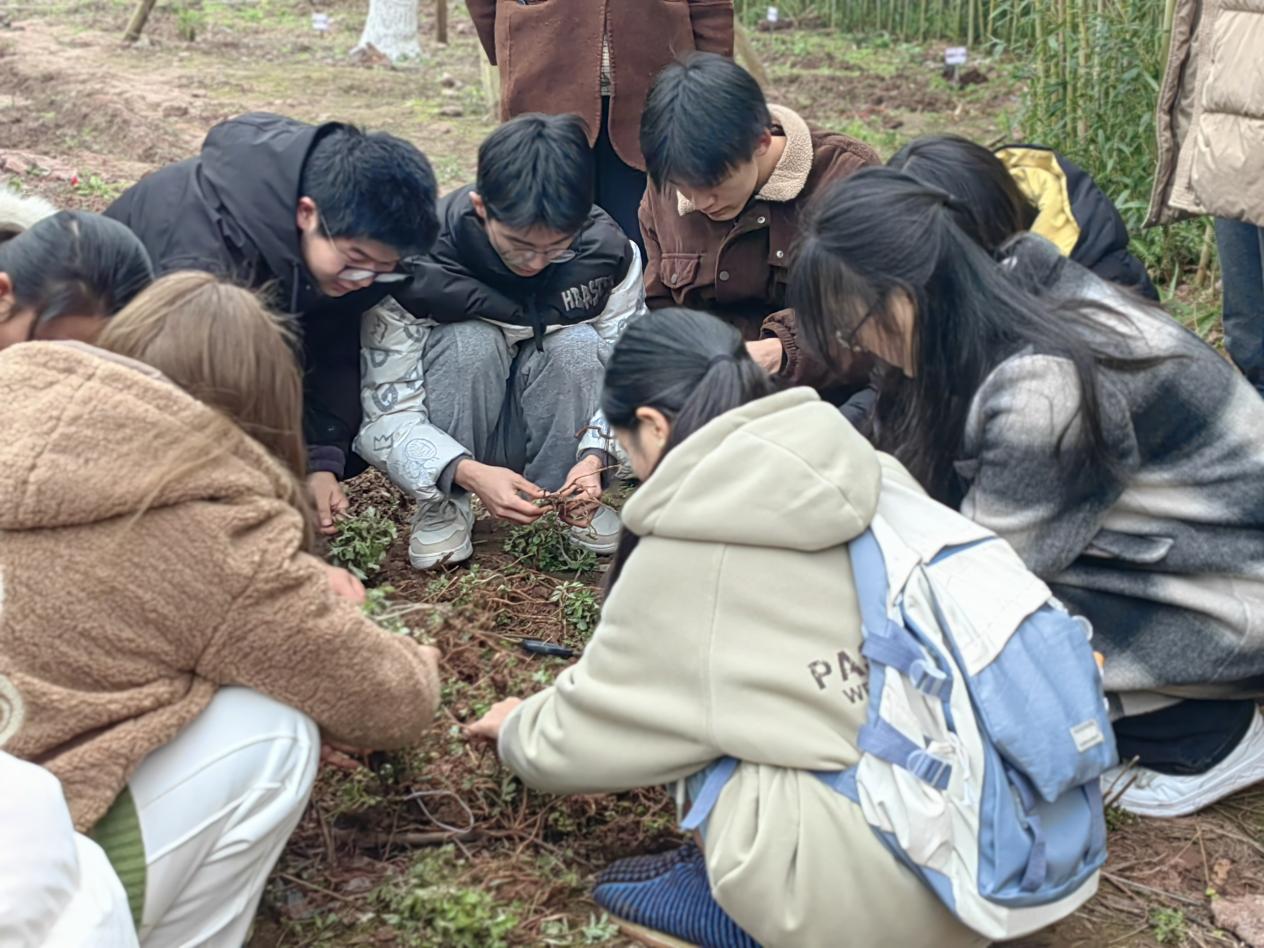 课间,同学们来到学院背后的种植园地,认真的为艾草地翻土挖坑、除草浇水。“中草药功效神奇,是中华文化的瑰宝。艾草对土壤适应性较强易存活,但同学们不要忘了定期来浇水除草哦”,针对存活率较低的种植区,中药资源教研室的老师们带着同学们进行补种,并再次讲解了艾草的生长习性和种植要点。