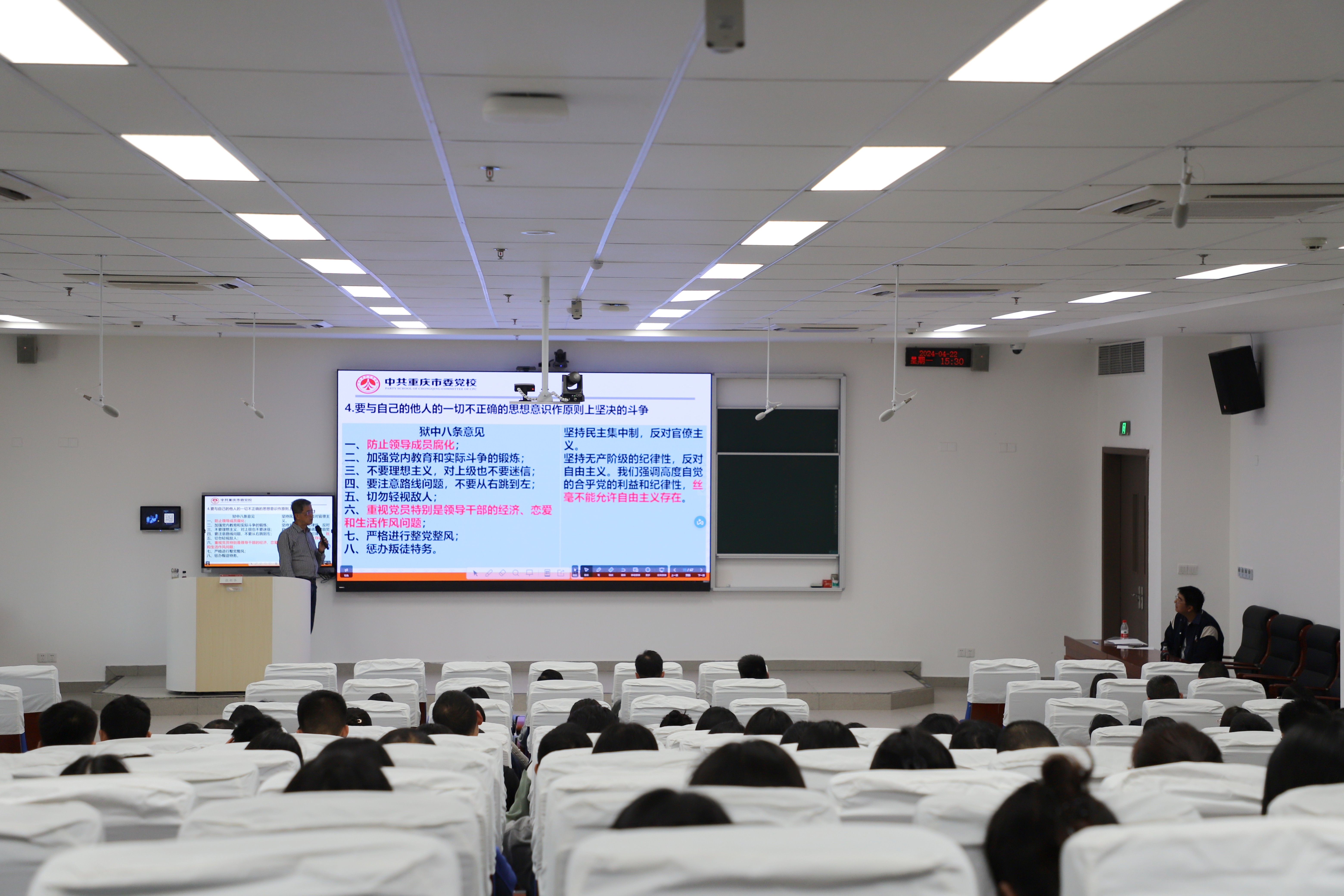 4月22日,taptap点点举办第二期“三栖名师”讲堂,特邀中共重庆市委党校张新华教授作《中国共产党人的一面不朽旗帜 ——周恩来〈我的修养要则〉解读》主题讲授。学院300余名教职工现场听讲。