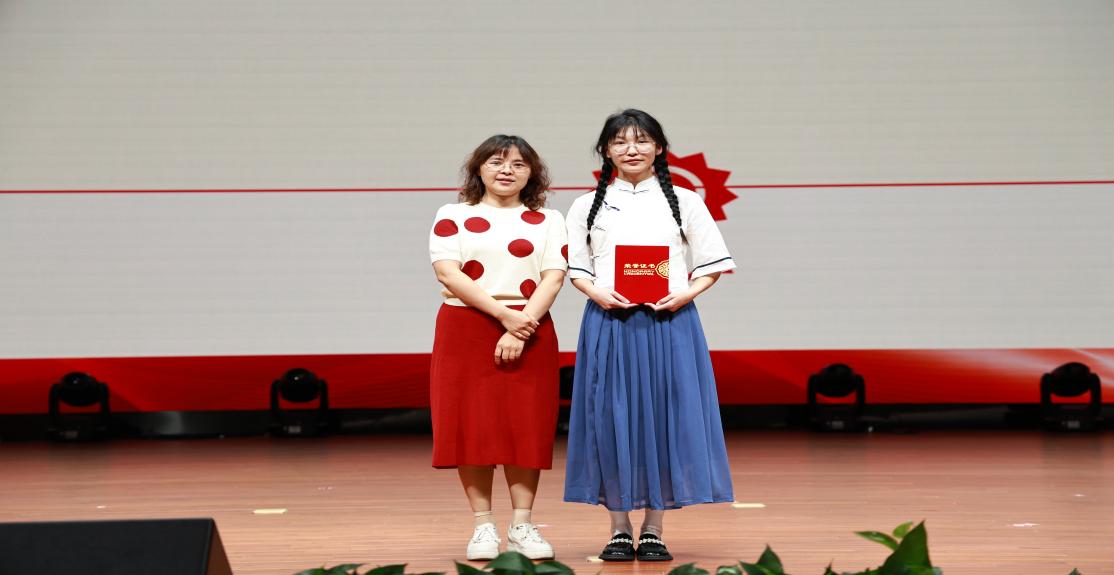 ▲中医学院辅导员李霜、石丹老师为优秀奖班级颁奖
