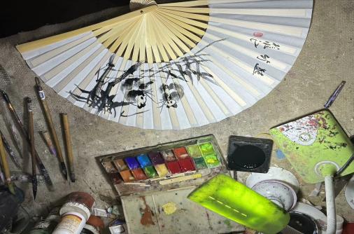 ▲邓师傅现场示范画扇