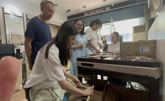 ▲全队随邓师傅学习制扇