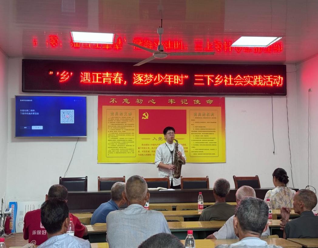 ▲7月20日,“绿野先锋”社会实践团走进垫江县高坡村,了解当地居民生活现状,宣扬社会主义核心价值观,宣传反诈防骗知识,还为村民们带来了丰富的节目表演。