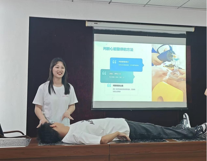 ▲在急救技能培训环节,“知行合一”社会实践团成员更是倾囊相授,利用真人模型进行现场演示,详细讲解了海姆立克急救法、AED(自动体外除颤器)的使用方法及心肺复苏术(CPR)的操作步骤。通过理论与实践的紧密结合,让孩子们掌握了关键时刻能够挽救生命的急救技能。