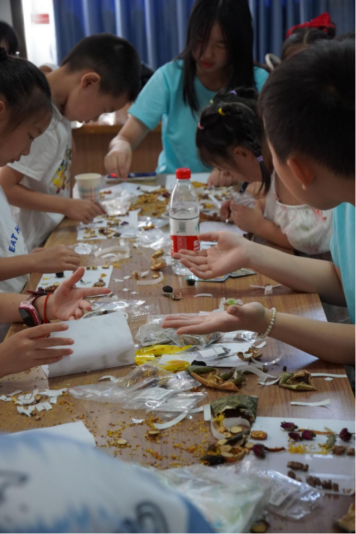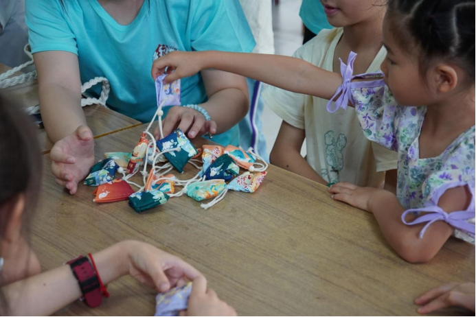 ▲7月21日,“知行合一”社会实践团开展了中药香囊制作、中医防暑小知识宣讲等活动,让孩子们亲身体验中医药的魅力,了解中医药在日常生活中的应用与价值。