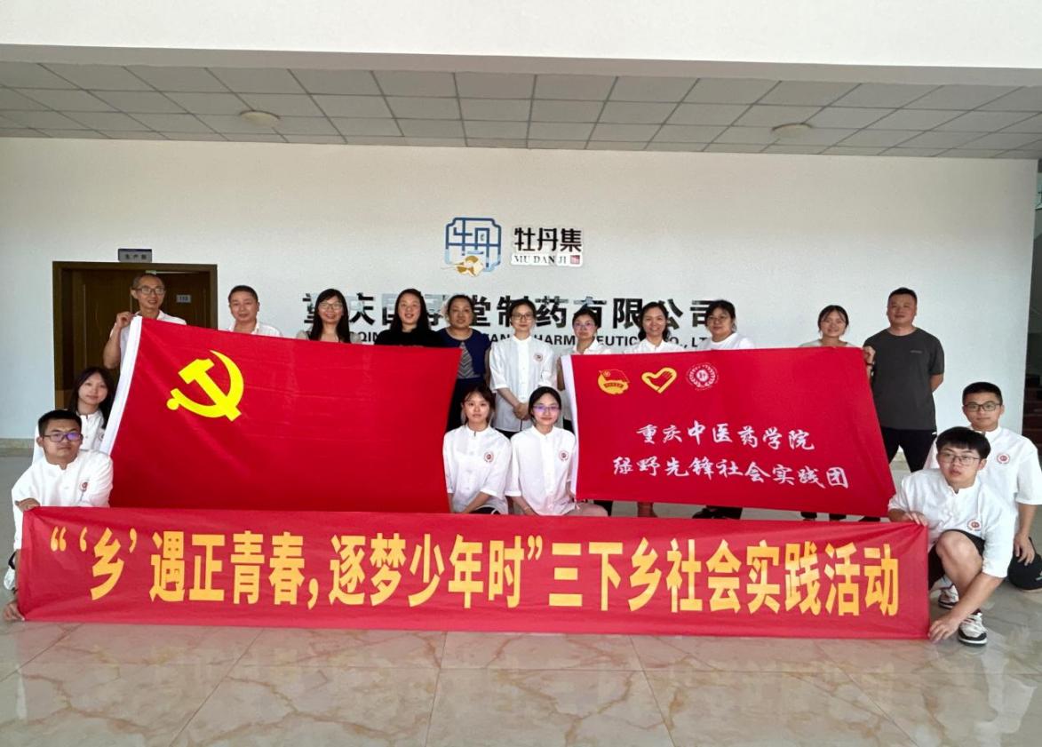 ▲7月21日,“绿野先锋”社会实践团走进重庆国承堂制药有限公司,了解中药炮制加工流程,讲解《“十四五”中医药发展规划》,宣传中医养生保健知识、开展推拿按摩义诊服务。