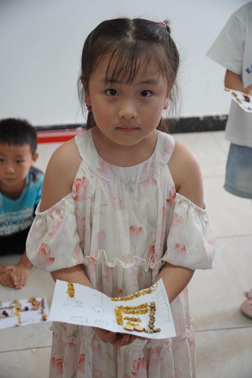 ▲7月22日,“知行合一”实践团与当地小朋友们一起创作中医药文化作品,活动现场充满乐趣,激发了小朋友们的无限创意。