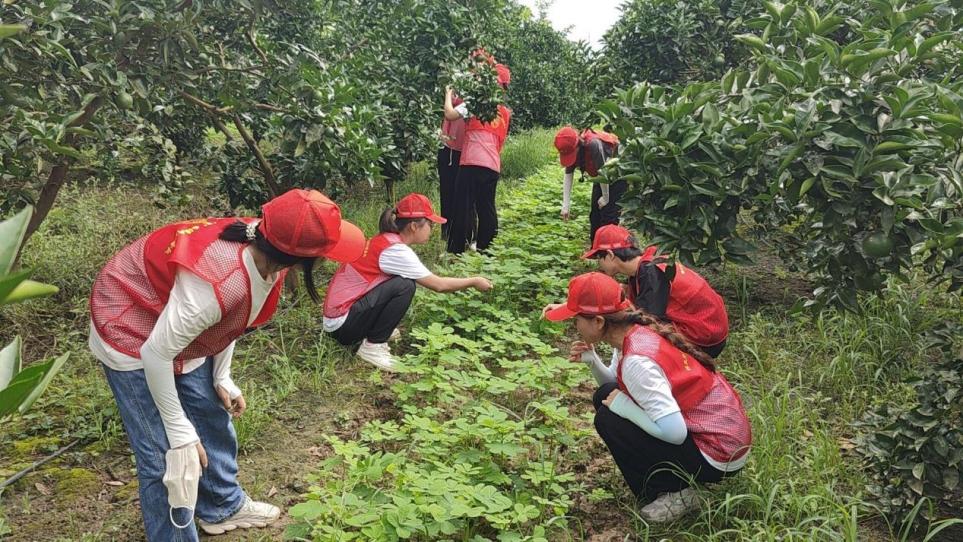 实践团与重庆市现代农业产业技术体系中药材创新团队一起深入科研一线,在田间开展试验和调查,并对前期筛选的40余株枳壳进行采收、测产和考种。该团队从枳壳的长势、抗性、产量等方面试验,不断筛选出优质品种进行推广,并采用“枳壳+菊花、姜黄、决明子等”的林下立体生态种植模式,探索出一条生态优先、绿色发展的新路子,切实带动了药农增收致富,为乡村振兴注入了强劲动力。