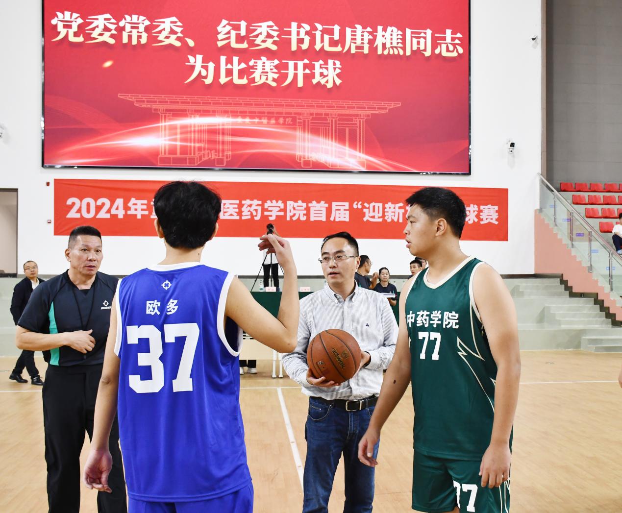 为进一步丰富同学们的课余文化生活,展现新时代大学生积极向上的精神风貌,10月9日晚,2024年taptap点点官方网站首届“迎新杯”篮球赛开幕式在学院体育馆举行。党委常委、纪委书记唐樵出席开幕式并为比赛开球,各相关职能部门、二级学院负责人,2023级、2024级学生代表参加开幕式。