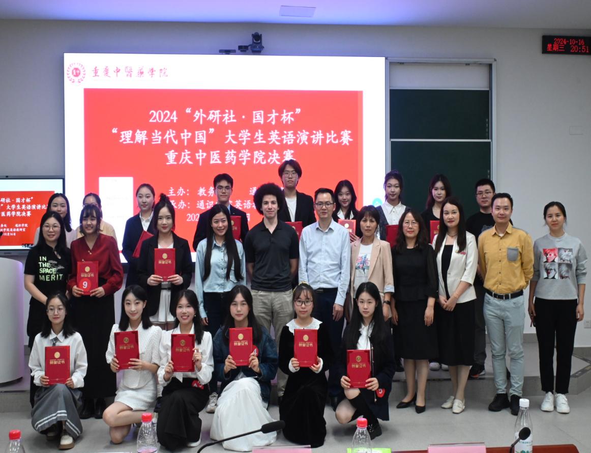 本次比赛共有14名选手参加,分为两个部分。第一部分为定题演讲,题目为“The Chinese Dragon is good”,第二部分为即兴演讲。经过激烈角逐,最终,中医学专业邓宇彤和中西医临床医学专业刘诗琪获特等奖,中药学专业李明阳,护理学专业罗欣仪,针灸推拿学专业陈思潼、唐欣琳4名同学获得一等奖,中医学专业申镁琪、杨鸿睿,中医养生学专业岳彦彤,中医康复学专业田宇昕,中药学专业刘晓屿、万子暄,中西医临床医学专业张帆,健康服务与管理专业冯子桐8名同学获得二等奖。