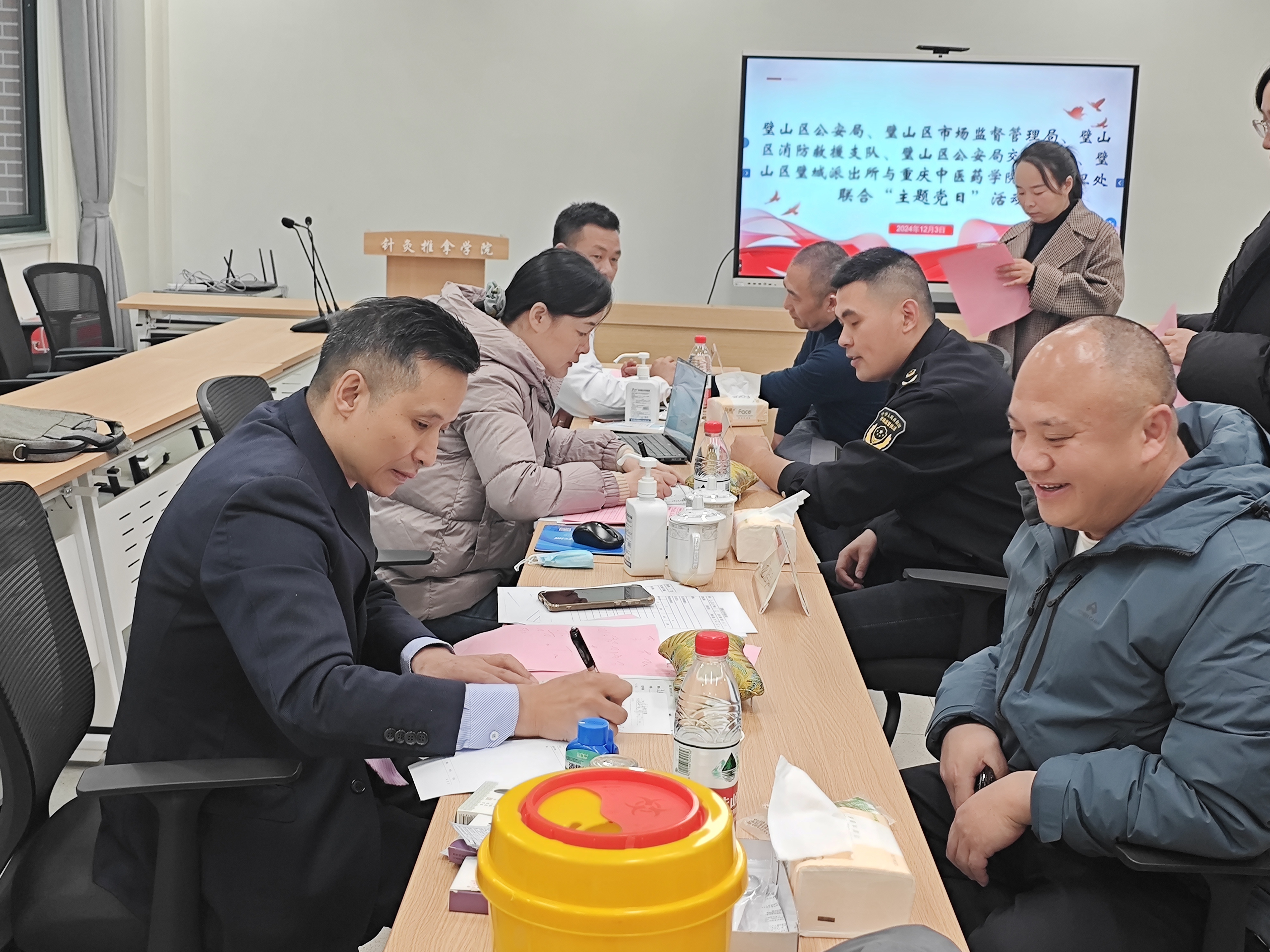 12月3日,璧山区公安局、璧山区市场监督管理局、璧山区消防救援支队、璧山区公安局交警支队、璧山区璧城街道办事处、璧山区璧城派出所等多部门与学院联合开展了“携手共建,安全校园——中医药文化体验”主题党日活动。此次活动由学院后勤保卫处负责组织,旨在加强部门间的沟通与协作,共同提升校园安全管理水平,更好推动中医药文化的传承与发展。学院相关领导及后勤保卫处全体工作人员参加活动。