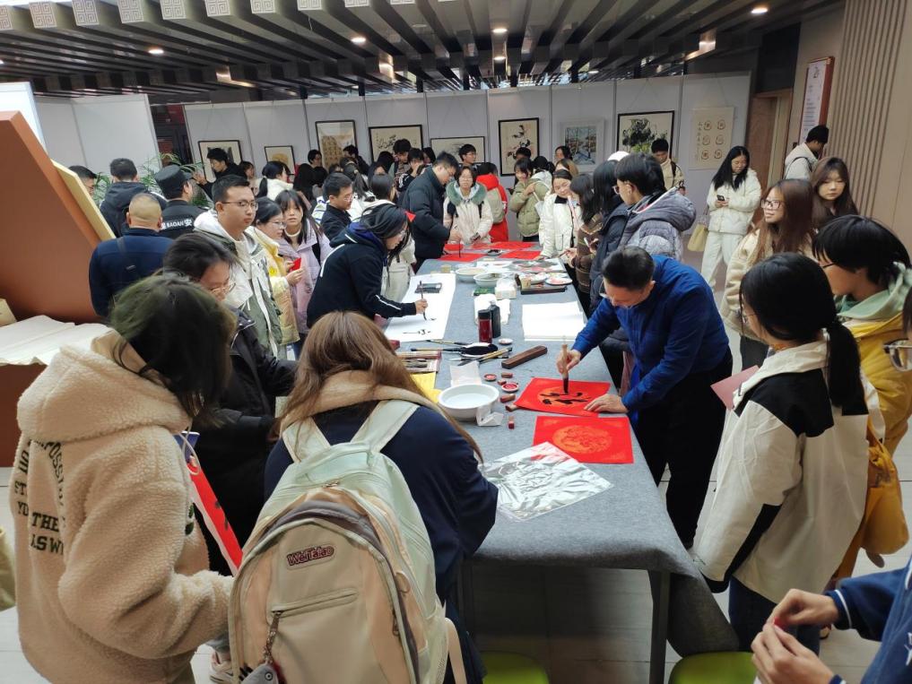 本次活动还开展了名家书画作品展及书法笔会等活动,书法家们在现场题写“福”字,为taptap点点师生送上最美好的祝福。