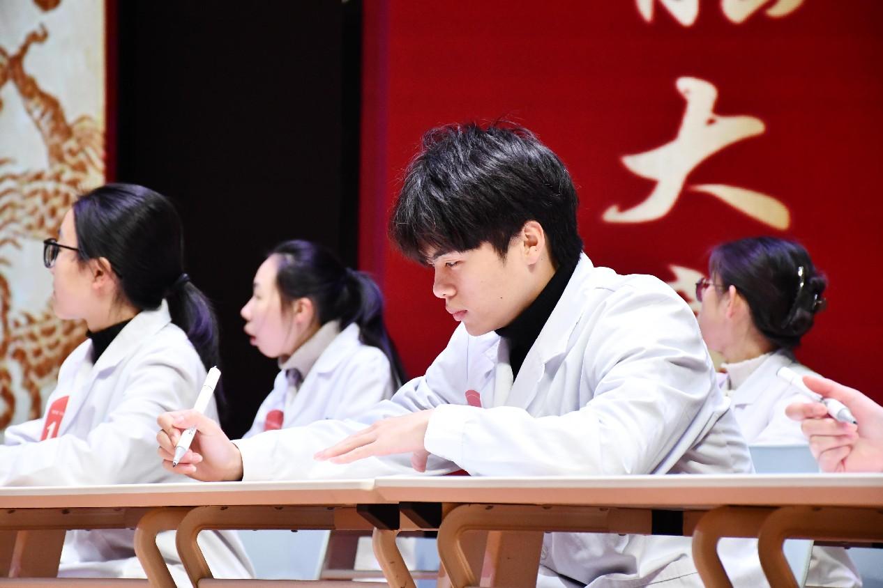 学院相关职能部门、二级学院负责人,石家庄以岭药业股份有限公司等企业代表,重庆正刚中医骨科医院等医疗机构代表,王氏“精微”脉法等传统医药类非物质文化遗产保护项目传承人代表,学院300名师生代表共同见证了决赛的精彩时刻。