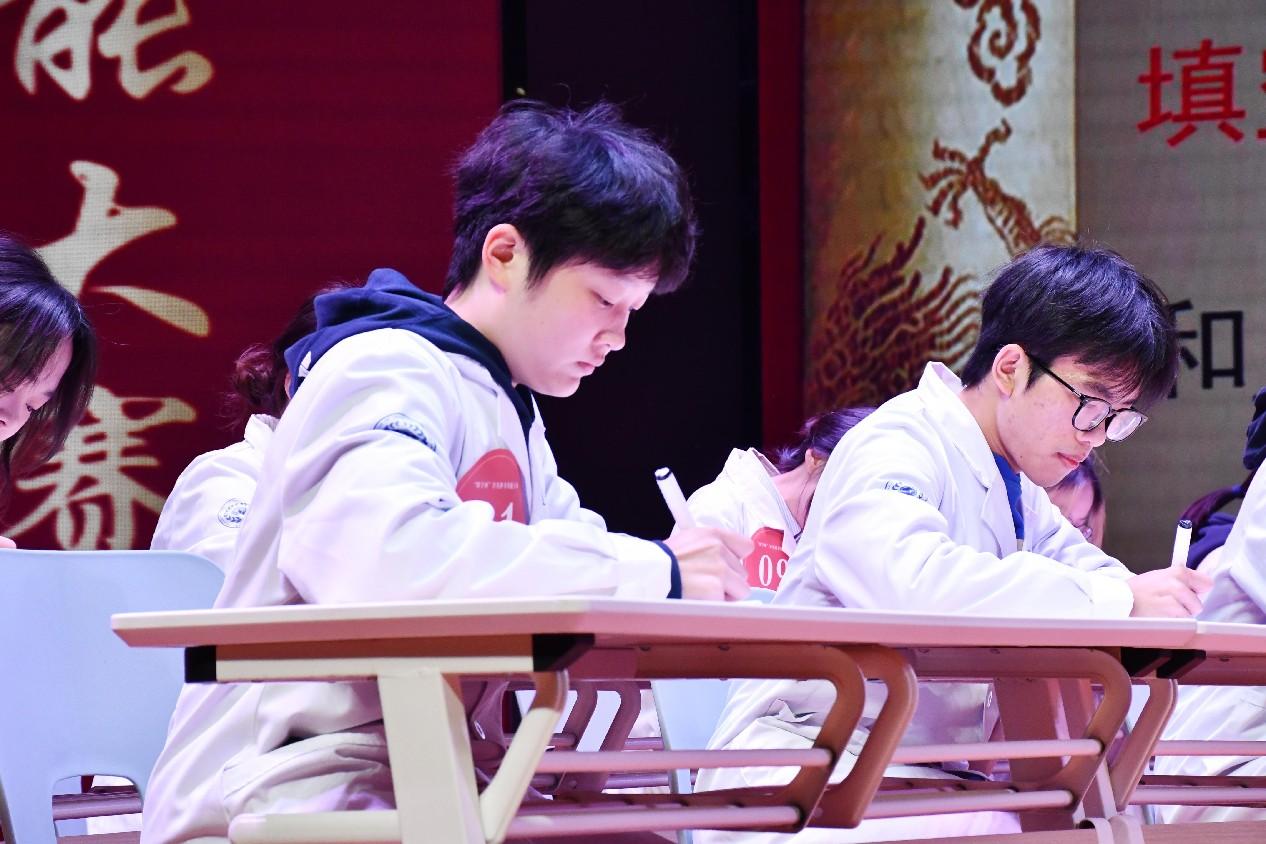 足太阳膀胱经、手太阴肺经、足少阳胆经……膏肓穴、公孙穴、天宗穴……舞台上,参赛选手们根据抽选的题目“绘经点穴”,落笔迅速,目光坚定,神情肃穆。