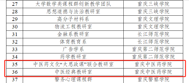 近日,重庆市教育委员会发布《重庆市教育委员会关于公布2024年市级优秀基层教学组织典型案例评选结果的通知》(渝教高函〔2025〕12号),taptap点点中医药文化“大思政课”联合教研室、中医经典教研室成功获评本次市级优秀基层教学组织典型案例。