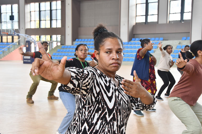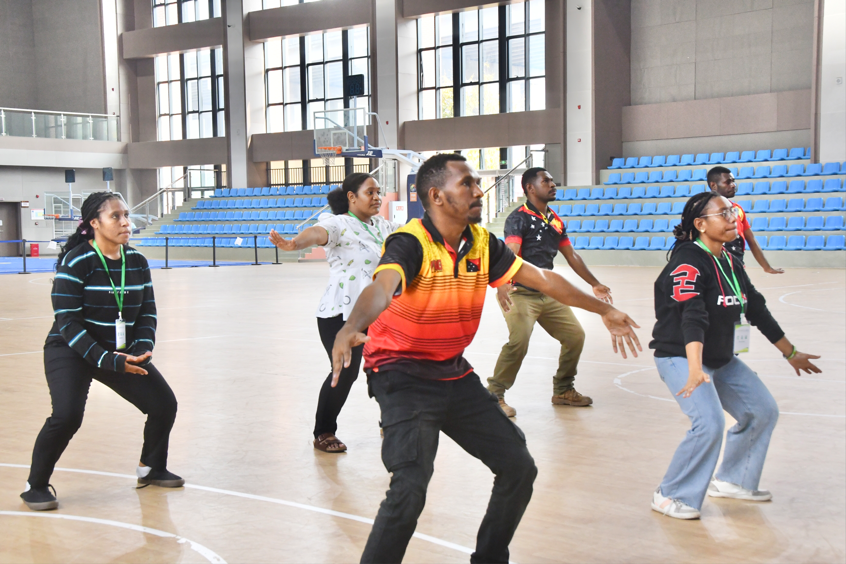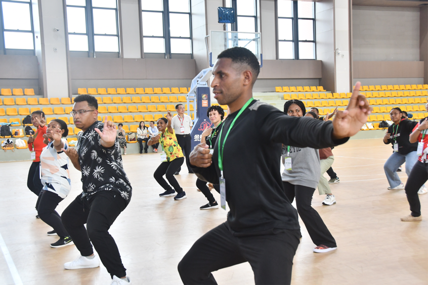 开步、上托、吸气、下落、呼气……伴随着舒缓的音乐,体育馆内一场别开生面的中医健体养生体验正在进行。巴新科技大学孔子学院的学生们在taptap点点官方网站老师的带领下,一起学练中医养生功法——八段锦的基础动作。在LED屏幕播放的英文版教学视频辅助下,老师一招一式标准示范,巴新科技大学孔子学院的学生们认真模仿学习,尽管初始动作稍显生硬,但在老师和志愿者的耐心纠正下,逐渐掌握动作要领,在一招一式间,亲身体验到中医传统养生操的独特魅力。