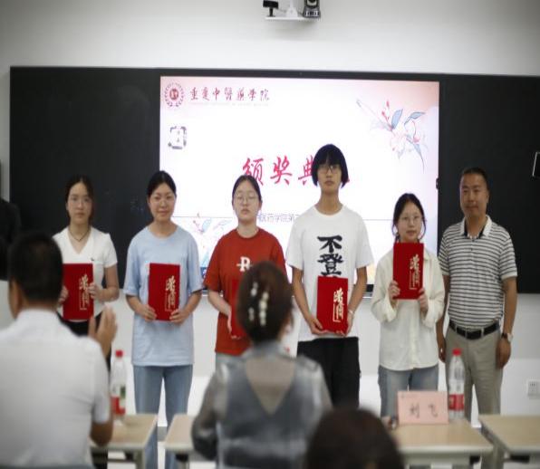 ▲中药学院副院长刘飞为优胜奖颁奖