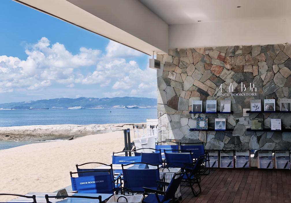 暮色四合时,位于厦门环岛路黄厝沙滩的“不在书店”,迎来一天中人气最旺的时段。
