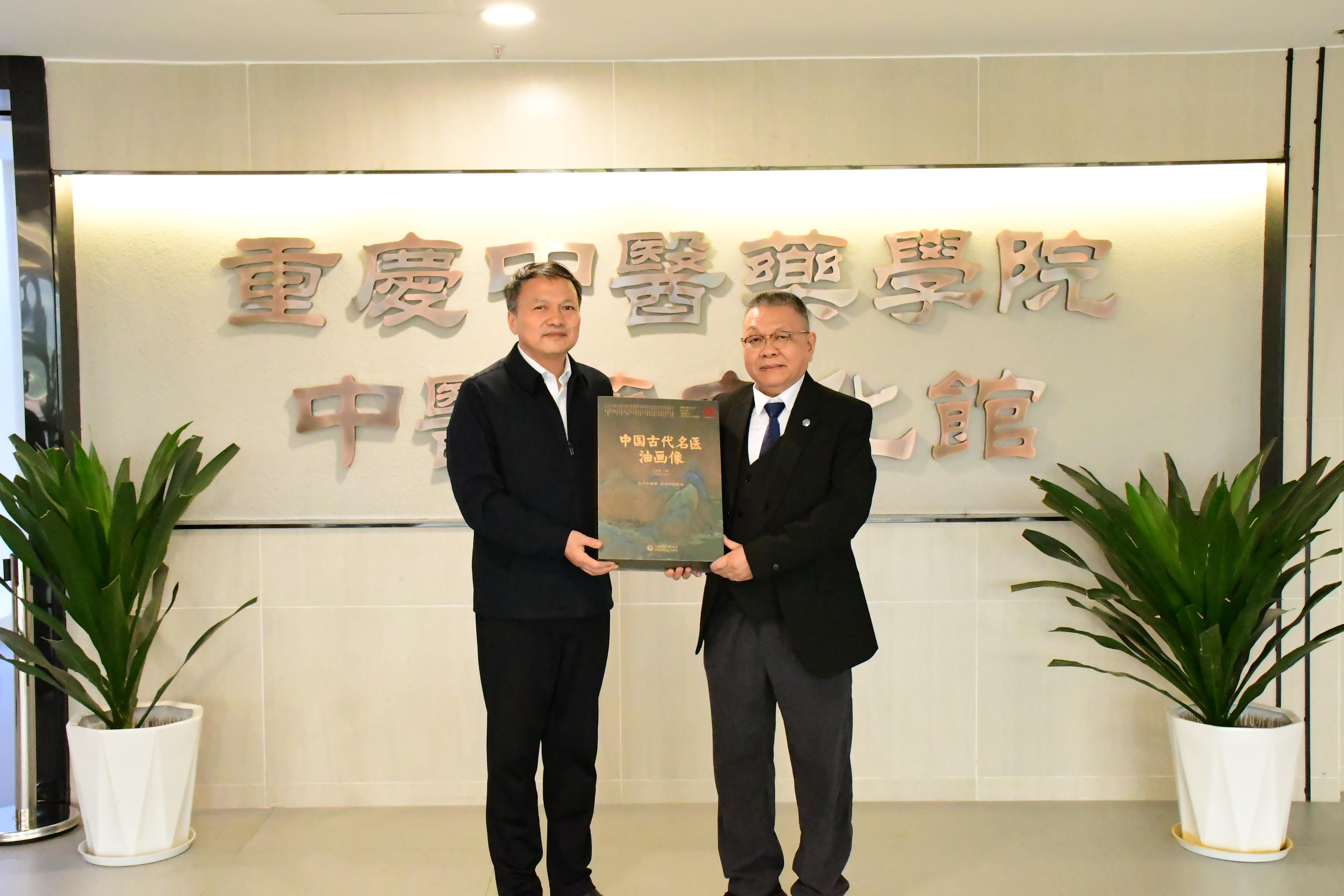 ▲毛嘉陵教授向学校赠送《中国古代名医油画像》