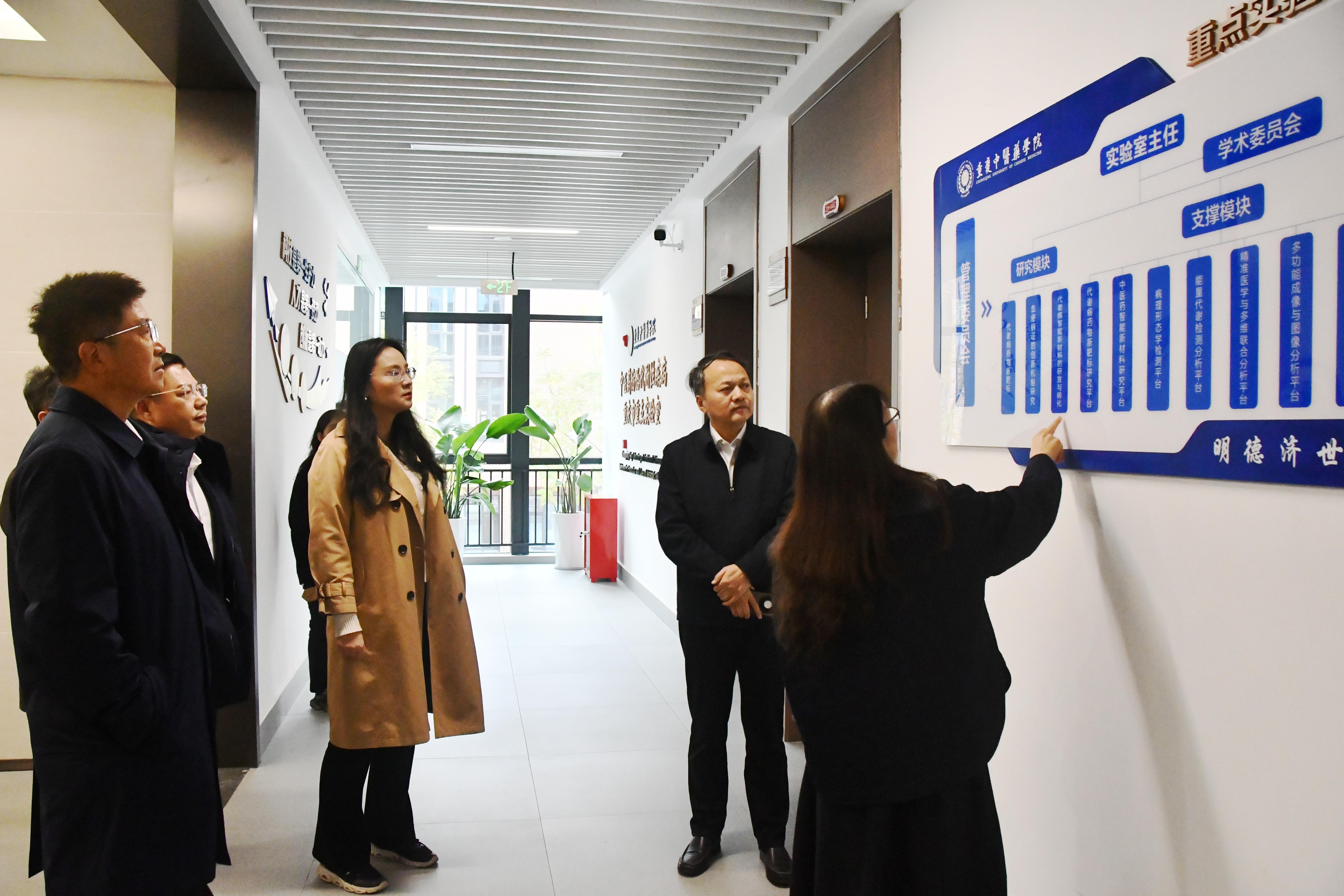调研期间,陈士林院士一行参观了基础医学院数字化解剖实验室、中医药创新研究中心,详细了解了学院建设概况及科研平台发展情况,对学院办学成效给予肯定。
