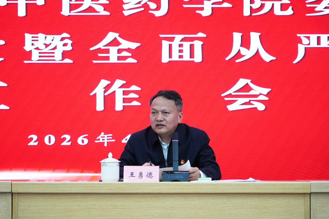 王勇德强调,2025年学校党委在加强党的政治建设、强化思想政治引导、夯实基层组织基础、建强干部队伍、深化作风建设、推进正风肃纪反腐、服务学校事业发展等方面工作取得扎实成效。2026年是学校“十五五”工作开局之年,要深入学习贯彻习近平总书记在二十届中央纪委五次全会的重要讲话精神,按照“三个更加”重要指示要求,以更高标准、更实举措推动学校全面从严治党工作向纵深发展。重点抓好七个方面工作:一是要建立完善党建统领机制。建立习近平总书记重要讲话重要指示精神和党中央重大决策部署闭环落实机制,完善党委领导下的校长负责制实施细则和领导班子议事决策制度,全面推行党建统领“885”工作机制,强化二级党组织效能,推进学校和直属单位党建工作一体化。二是要全面加强思想政治工作。建立健全党的创新理论体系化学习机制,深化理论宣传宣讲和理论研究,推动思政课程与课程思政同向同行,建立中医药文化“大思政课”研究中心,严格落实意识形态工作责任。三是要着力提升组织建设质效。建设“红岩先锋”变革型组织,建立二级党组织作用发挥机制,开展党建“双创”工作,加强学校与“两院一所”干部交流,推进领导班子运行评估和群众口碑评价。四是要认真落实巡视整改任务。坚决扛起党委巡视整改主体责任,落实班子成员“一岗双责”,强化监督跟踪问效,确保全面完成巡视整改任务,切实把巡视整改成效转化为事业发展标志性成果。五是要纵深推进正风肃纪反腐。持续整治“四风”问题,深入开展树立和践行正确政绩观学习教育,加强师德师风考核评价,深入推进清廉学校建设,支持学校纪委强化监督执纪问责。六是要压紧压实管党治党政治责任。构建完善全面从严治党责任体系,深化“四个一”工作机制,推进巡视巡察联动贯通,认真开展党建督查、抓基层党建述职评议、党建工作考核等工作。七是要全面加强校园安全稳定工作。健全校园安全风险防控体系,加强重点领域安全管理,常态化开展安全隐患排查整治,落实好实验室安全管理责任,强化师生安全教育和应急演练,严防极端案件、重大群体性事件。