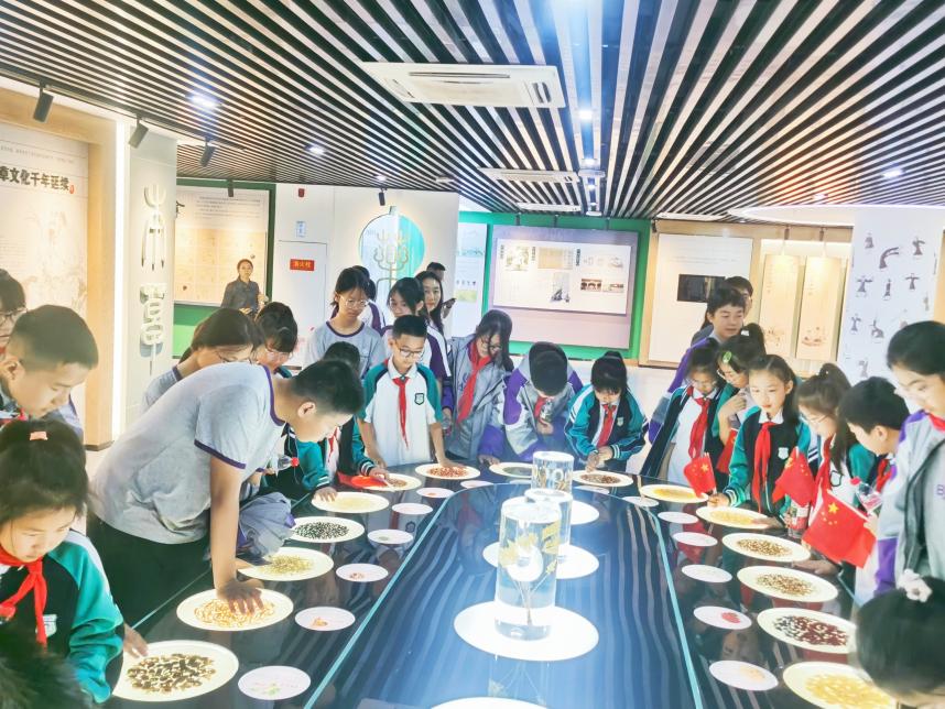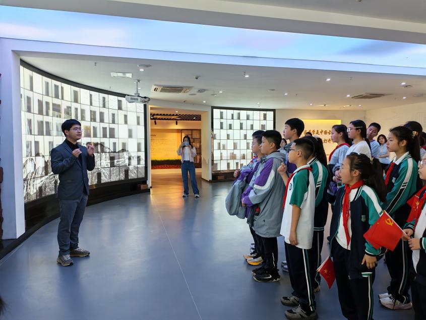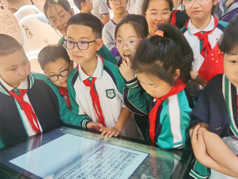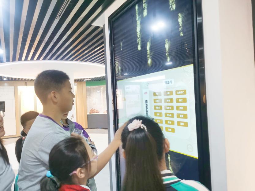 随后,中小学师生代表走进中医药文化馆,在志愿讲解员的带领下,进一步了解了中医药文化的起源与发展历程。为增强体验感,文化馆还设置了互动环节:同学们在电子屏上尝试药材配伍,学习八段锦、五禽戏等中华传统养身功法,沉浸式感受中医药文化的魅力。