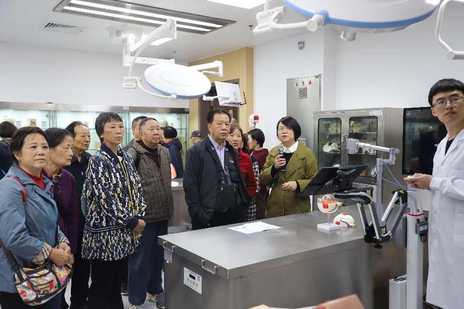 ▲老干部们参观基础医学院