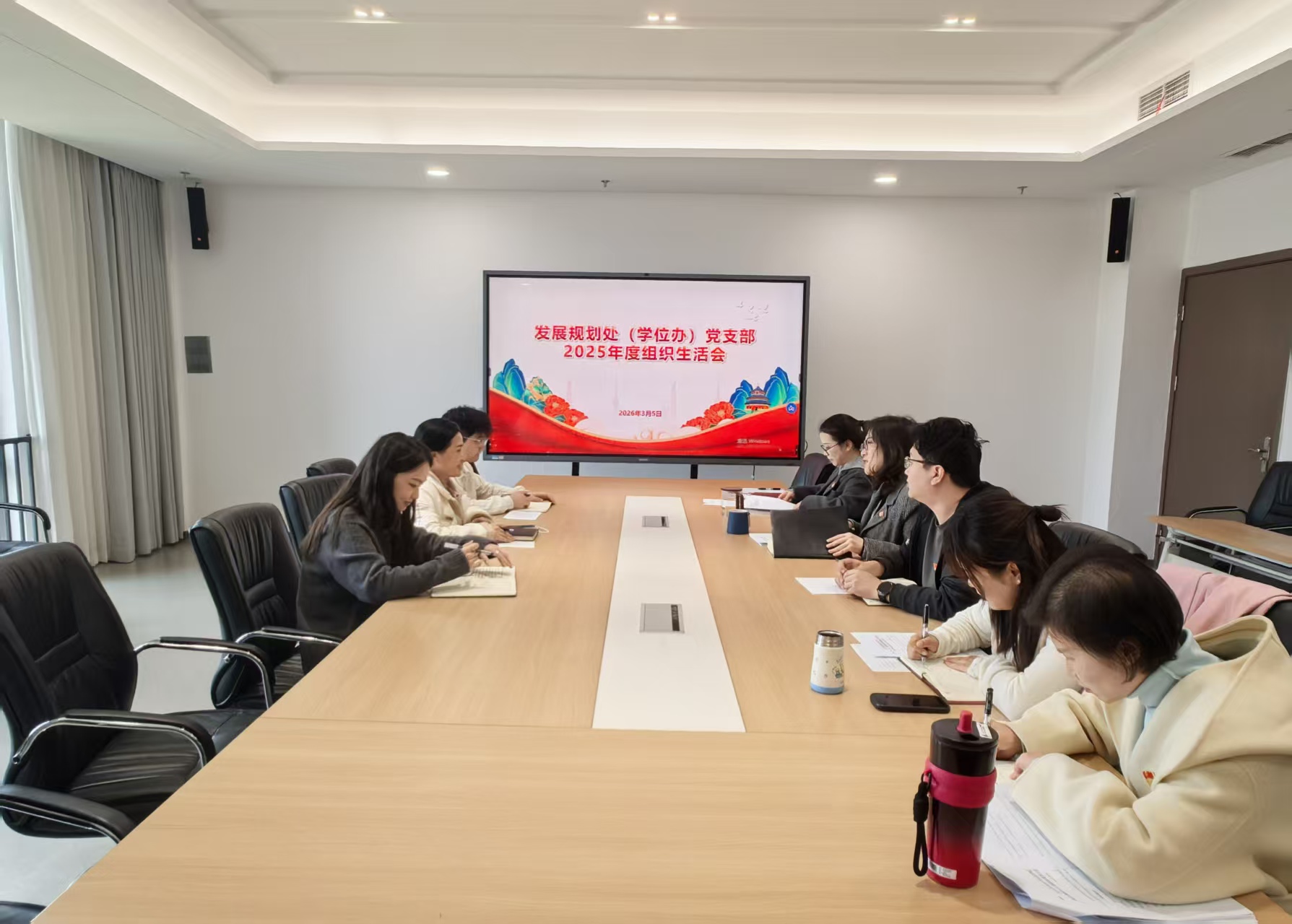 2026年3月5日,发展规划处(学位办)党支部召开2025年度组织生活会。支部党员准时参会,会议由支部书记陈劲主持。