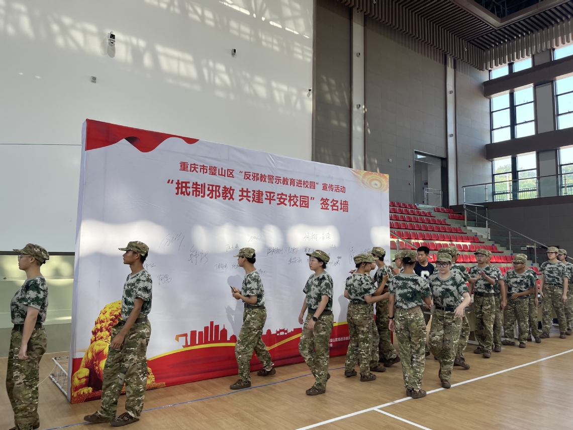 1200余名师生参加了此次活动,认真听取了区委政法委政治处主任万洪的宣讲,随后,同学们通过参观展览、阅读宣传资料、在签名墙上签名等方式,全面了解了邪教的本质、特征和危害,以及如何识别、抵制和防范邪教的方法。新生代表张晁辉作了表态发言。