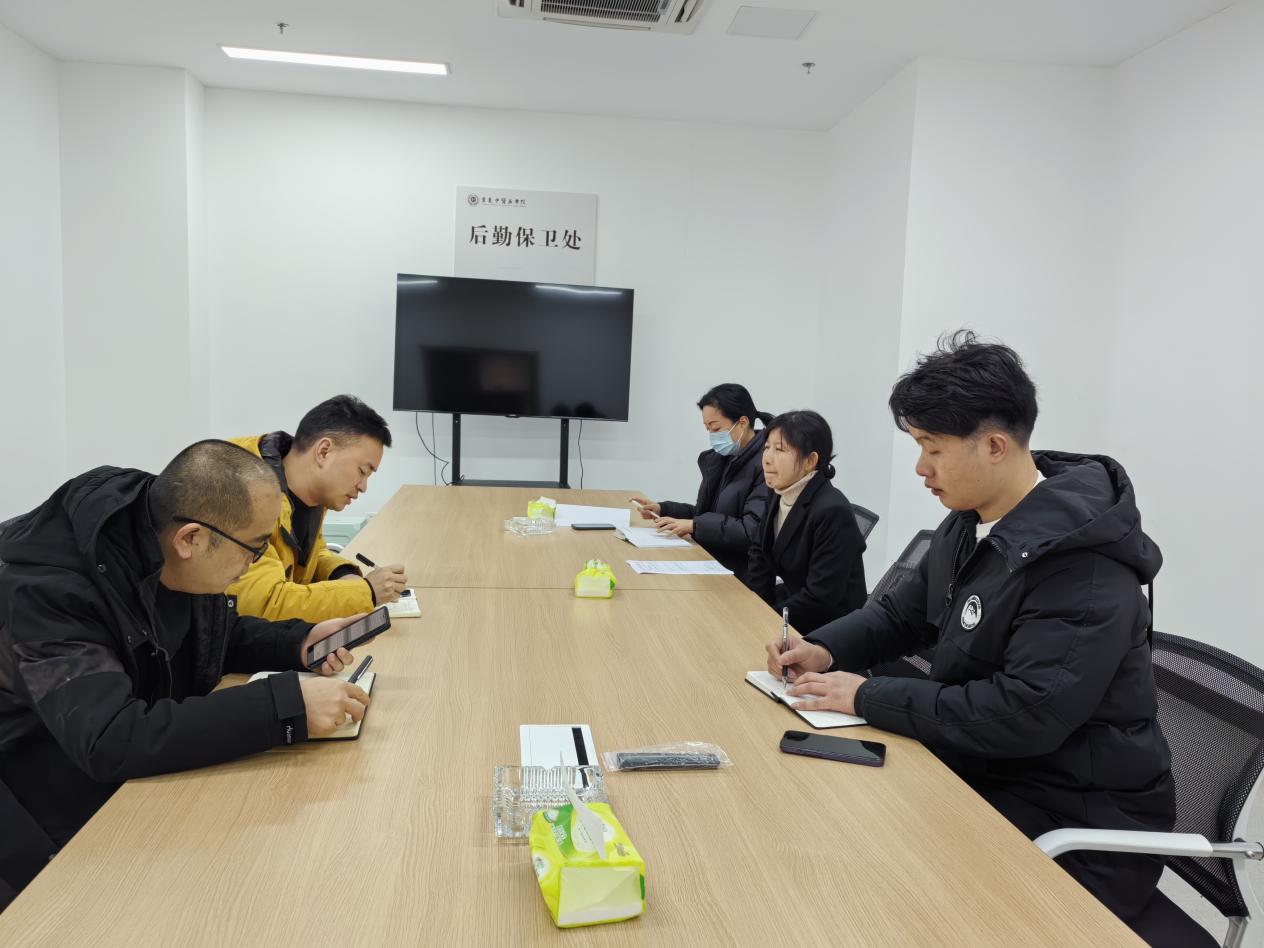 2023年12月25日,后勤保卫处召开学院食品安全推进会,学院食品安全员袁瑛、李孝彬,学生食堂负责人何忠琴、陶梅,职工食堂负责人方琳双参加了会议,本次会议由袁瑛主持。