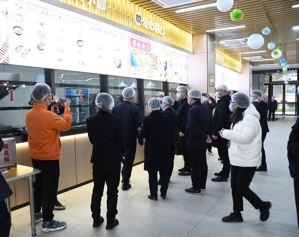 检查组一行到学生食堂实地检查