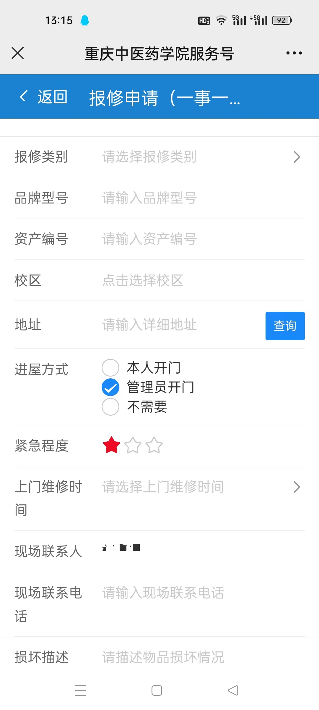 6.填写完相关信息后,点击“提交”按钮完成报修。