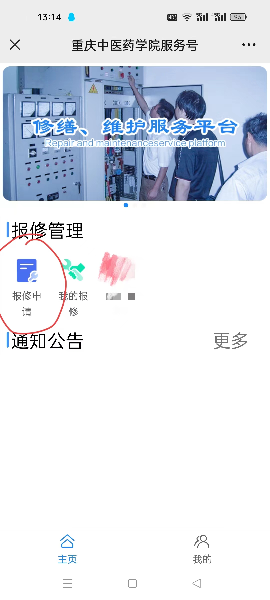 4.点击“报修申请”。