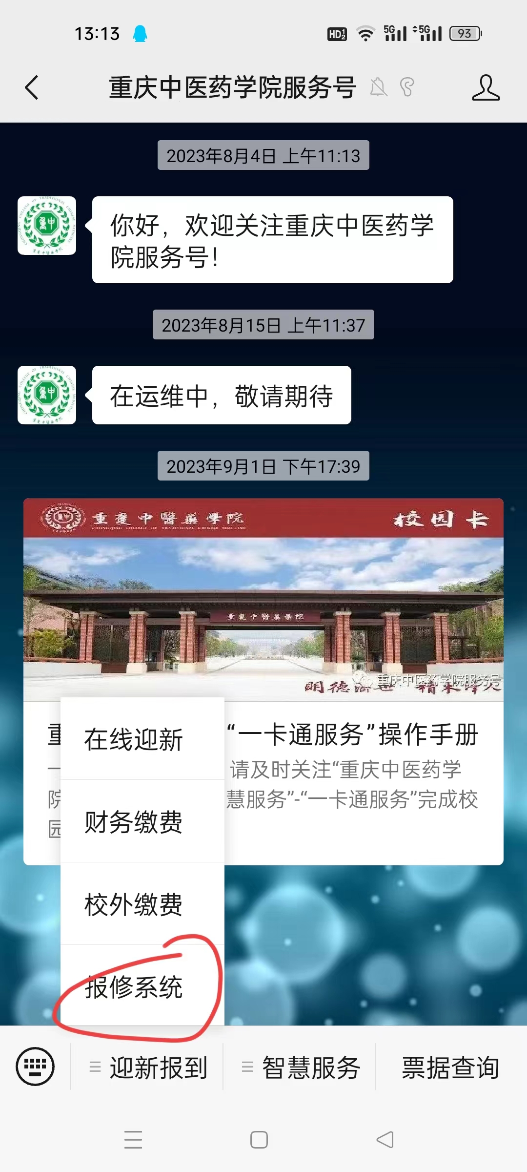 2.点击“报修系统”。