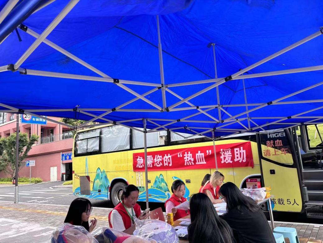 为弘扬“奉献、友爱、互助、进步”的志愿精神,提高学生的社会责任感,2024年6月19日至20日,学院联合重庆市血液中心在食堂门口开展了无偿献血活动。