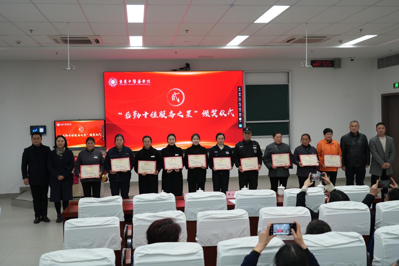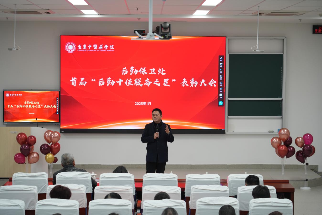 2025年1月18日,taptap点点官方网站学术报告厅E1-104迎来了首届“后勤十佳服务之星”表彰大会。党政办、学工部、工会及后勤保卫处领导出席,与物业、食堂第三方员工及受表彰员工共襄盛举。大会由后勤保卫处处长黄小平主持。