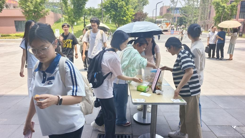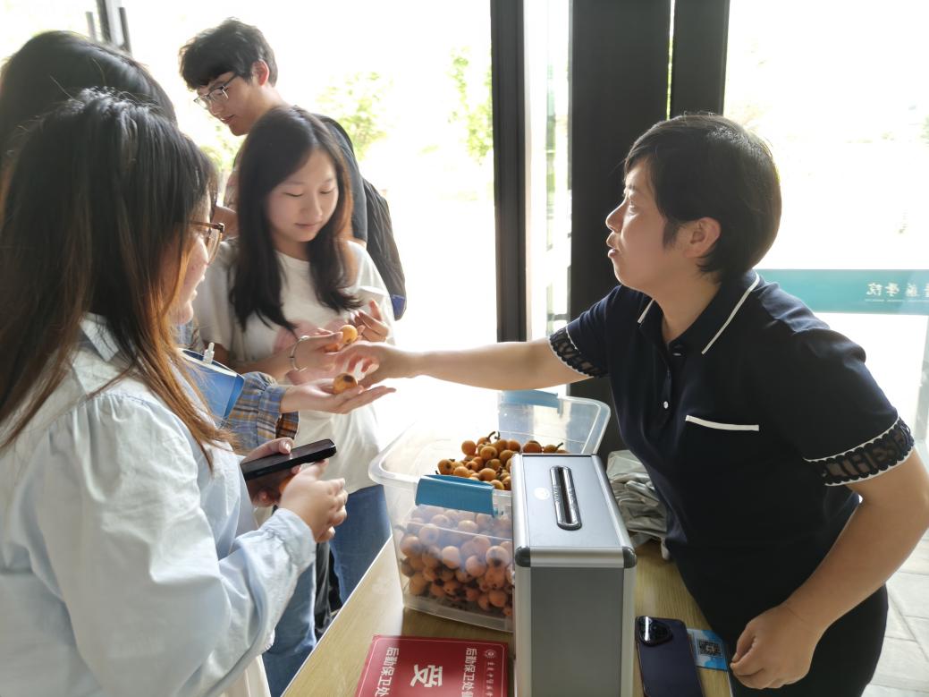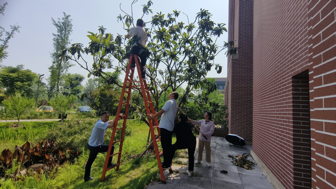 后勤工作人员架起扶梯、手提果篮,在确保安全的前提下对校园内枇杷树进行科学采摘。午饭时间,圆润饱满的枇杷现身学生食堂入口处。“同学们来领枇杷、梅子和杏子啦!”随着后勤老师亲切的招呼声,一盒盒洗净的果实递到同学们手中。不少同学现场品尝后点赞:“清甜多汁,吃出了校园的初夏味道。”