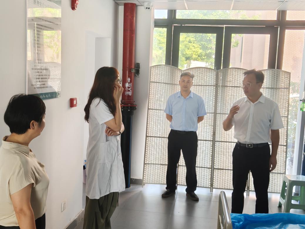 朱吉彬副院长一行先后来到学生食堂、学生宿舍、医务室、警务室等区域,详细察看了解暑期医疗和餐饮保障、学生宿舍家具安装等工作情况。他对后勤保障一线工作人员利用暑假工作黄金期,坚守一线争分夺秒全面推进项目的工作状态和所作出的积极贡献给予了充分肯定,对高温酷暑守初心、坚守岗位担使命的全体后勤人员表示了由衷的感谢。他叮嘱一线工作人员要合理安排作息、注意防暑降温,确保高温条件下生产安全,并为大家送上了防暑降温慰问品。