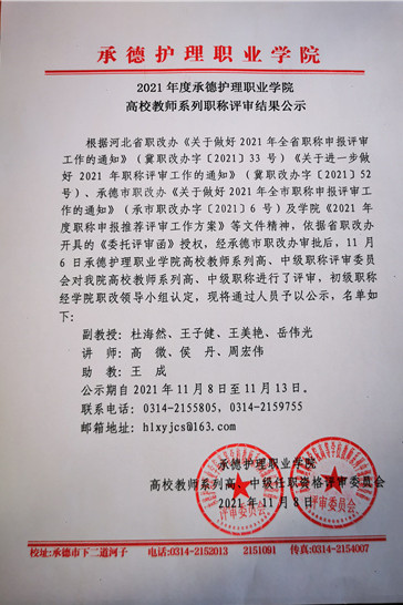 2021年度beat365正版唯一官网必一高校教师系列职称评审结果公示