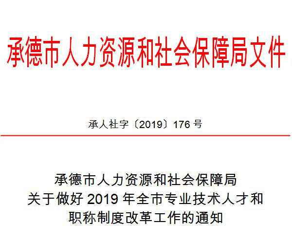 为深入贯彻落实中央、省委、市委关于人才工作和职称制度改革工作意见,根据省人社厅《关于全面做好2019年专业技术人才工作的通知》(冀人社字〔2019〕203号)和《关于做好2019年职称制度改革工作的通知》(冀人社字〔2019〕221号)文件要求,结合我市实际,现就有关事宜通知如下: