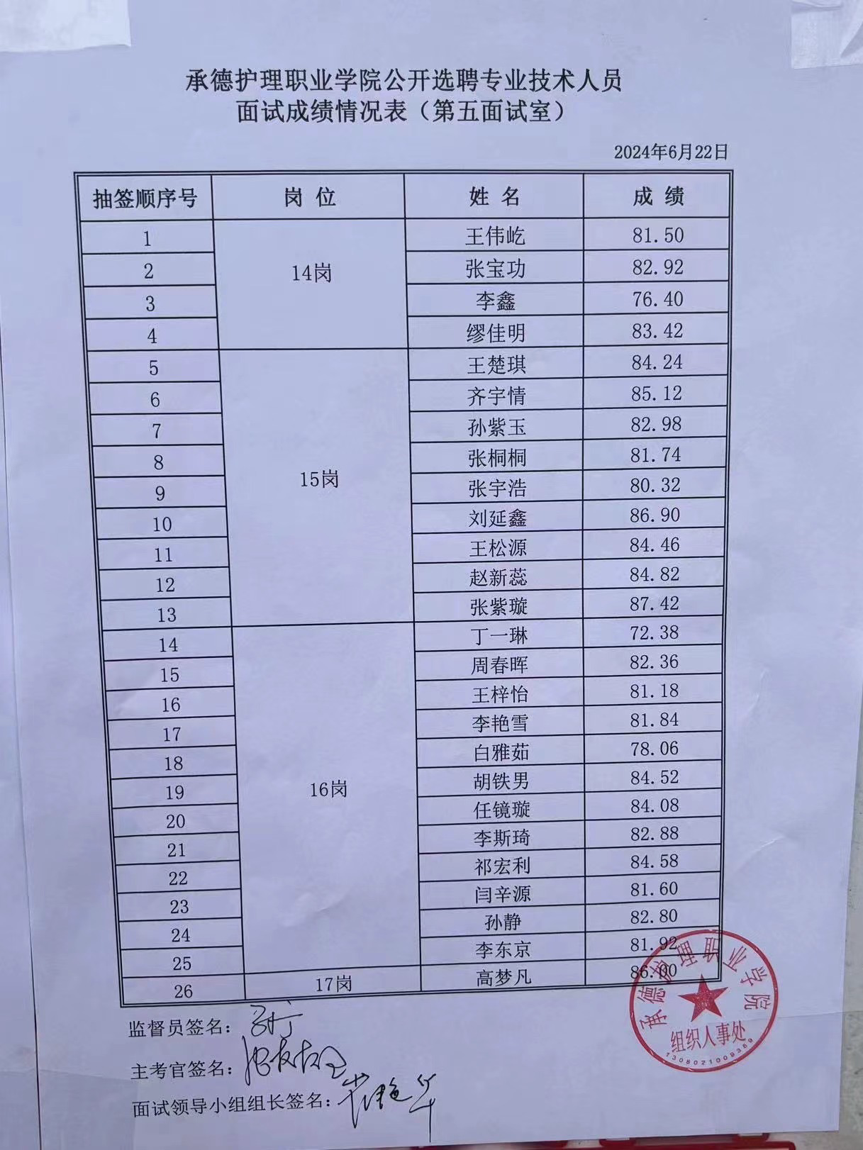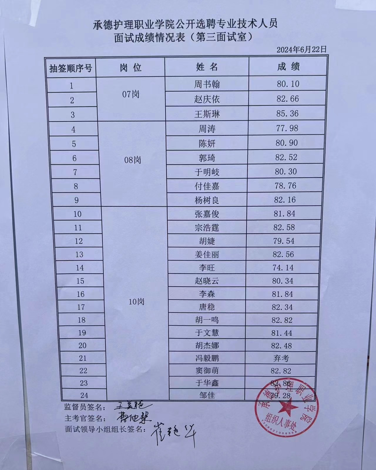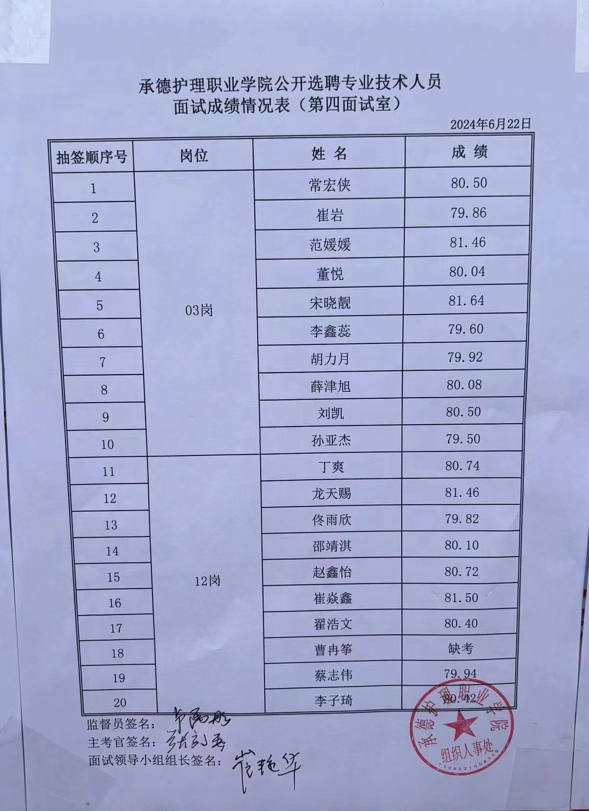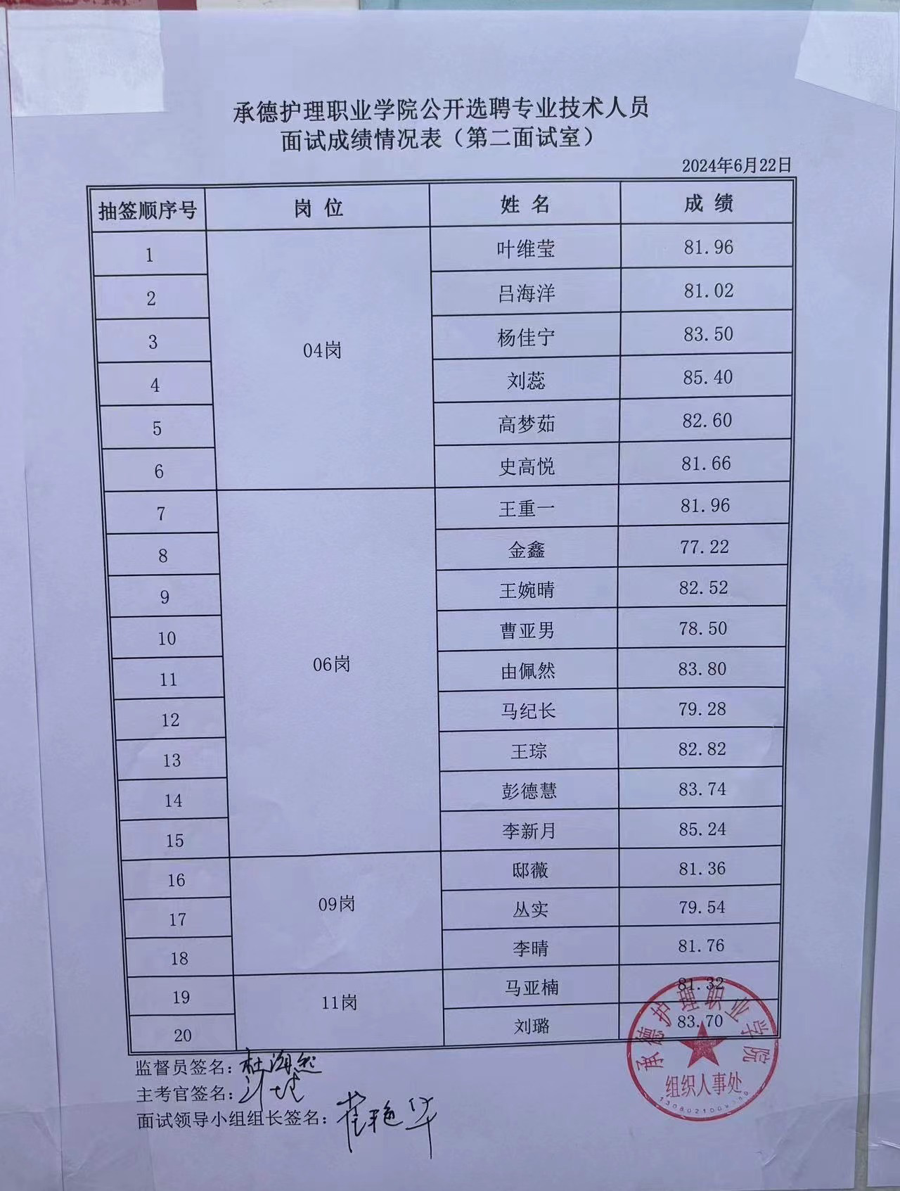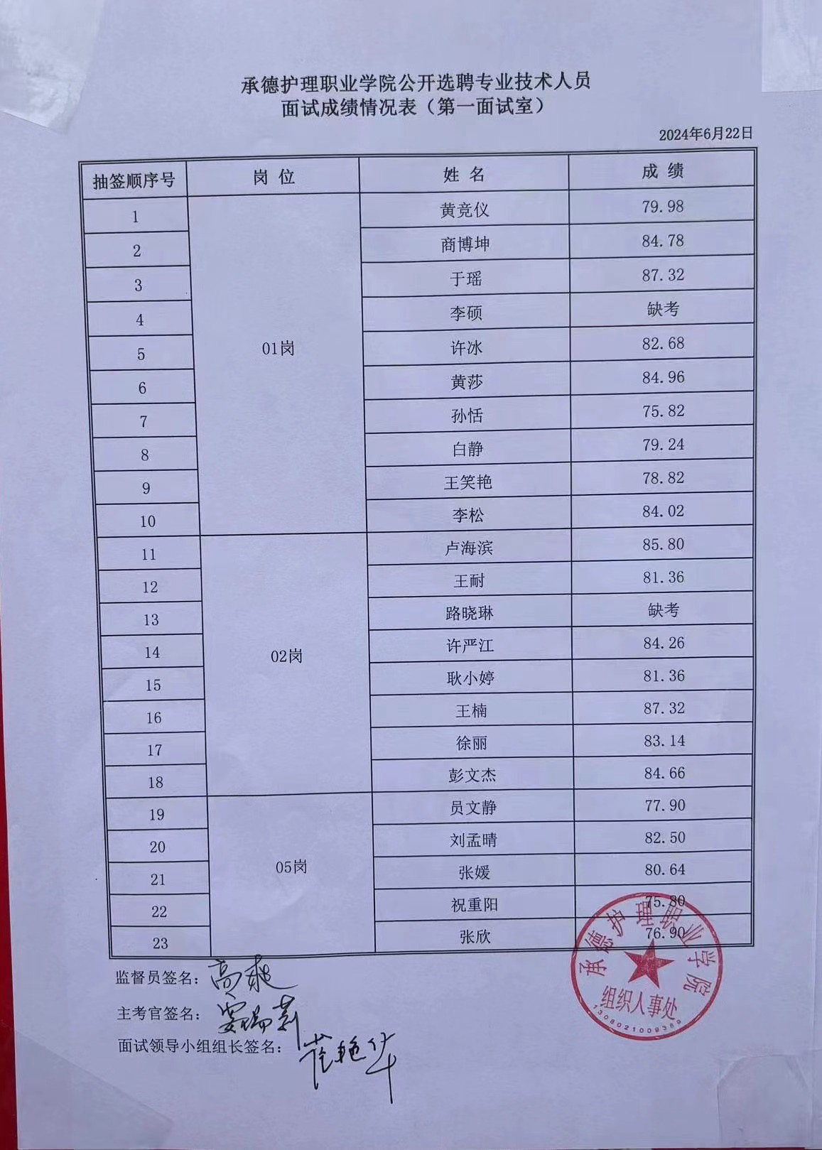 根据《beat365正版唯一官网必一公开选聘专业技术人员实施方案》规定,经现场报名和资格审查,2024年6月22日学院公开选聘专业技术人员面试工作在beat365正版唯一官网必一进行。根据面试成绩,现将进入体检程序的人员名单公告如下(共32名)。具体体检要求另行通知,请各位考生及时关注网上公告,并保持通讯畅通。