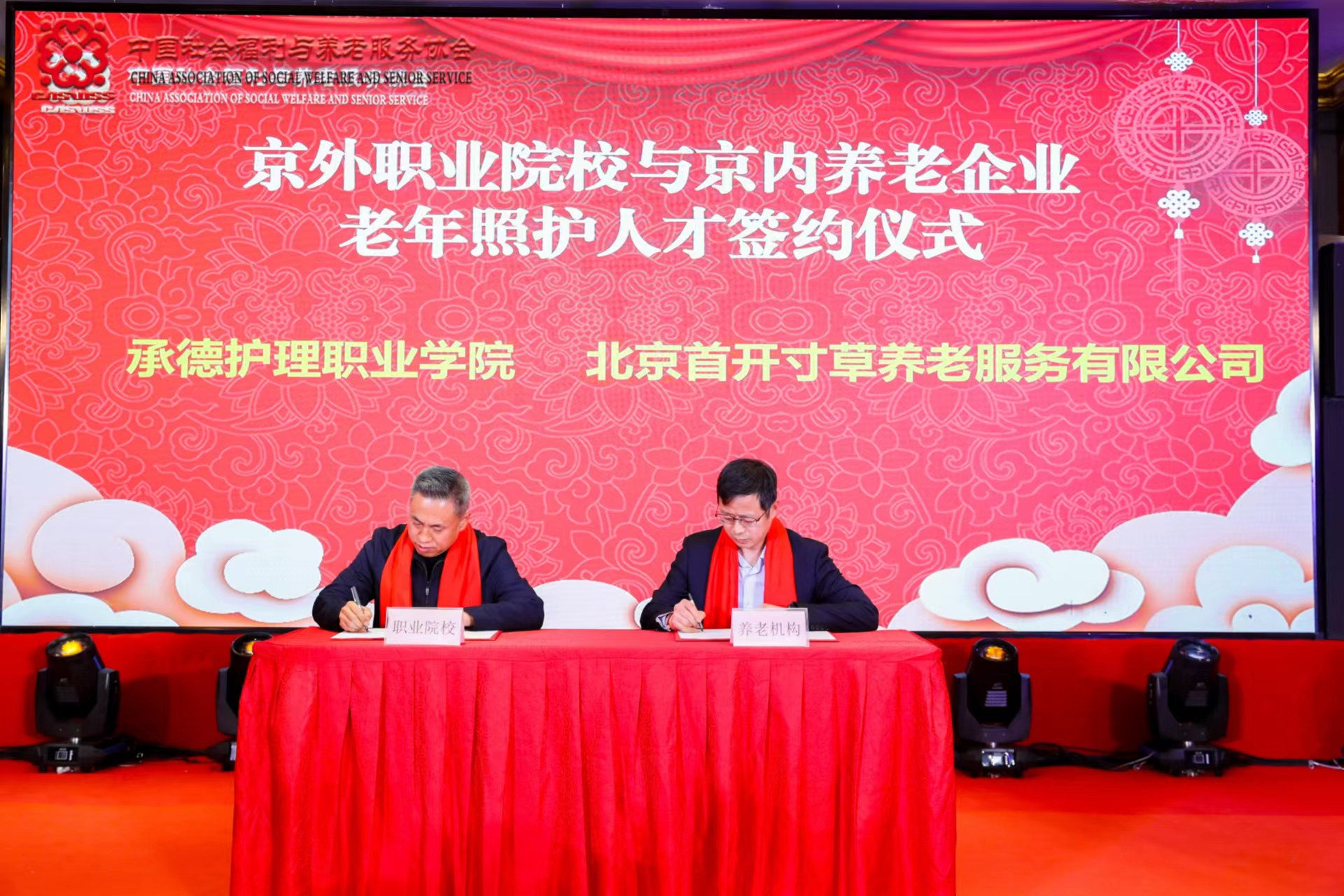 1月21日,中国社会福利与养老服务协会(以下简称“中福协”)首届主题年会在北京召开。副校长白兴武受邀参加会议,并代表学校与北京首开寸草养老服务有限公司签订养老服务人才校企战略合作协议。