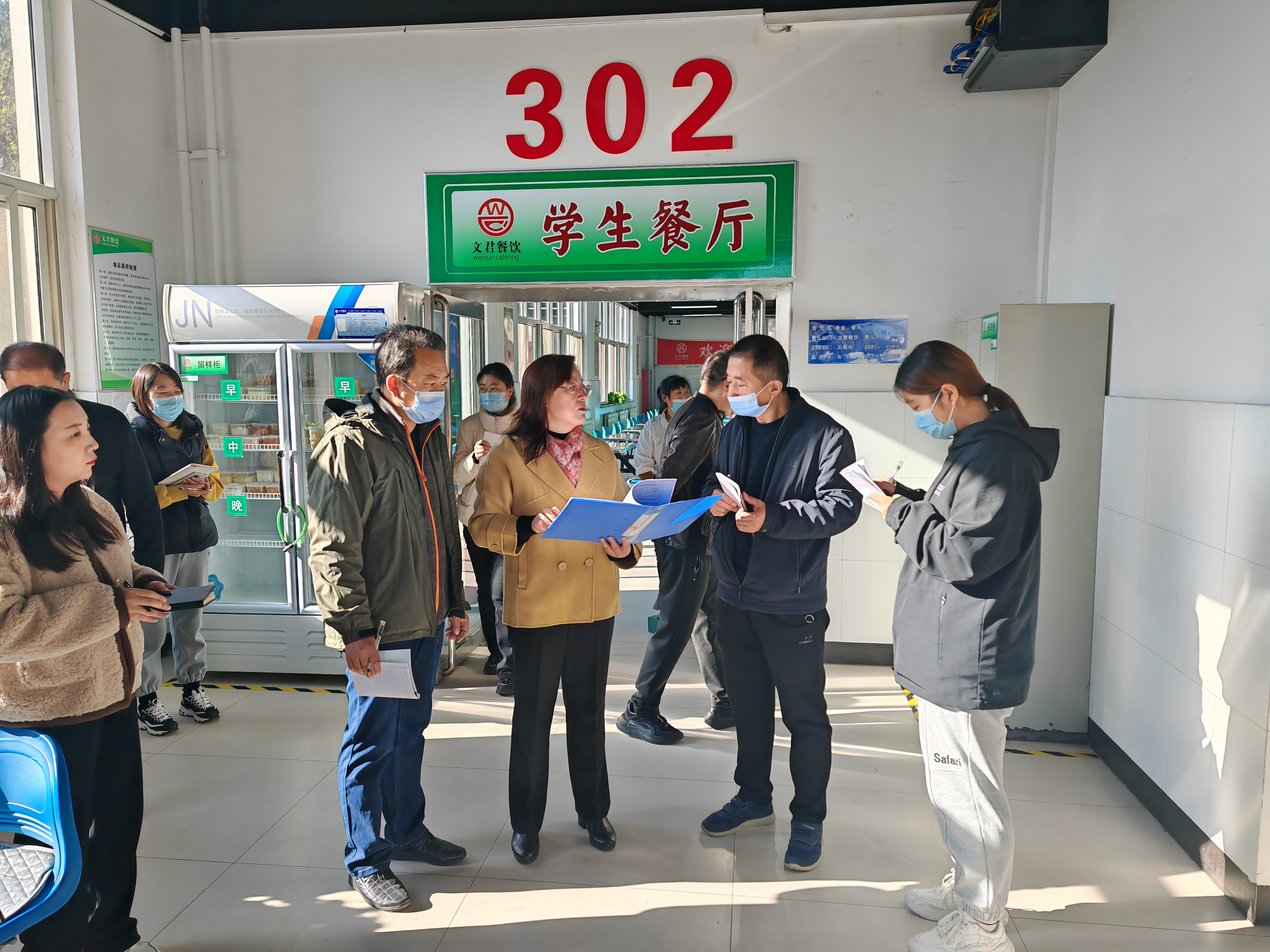 走进综合服务楼,单伟颖一行详细检查餐厅食品安全落实情况,抽查餐厅从业人员健康证,并听取相关负责人安全工作汇报。单伟颖强调,食品安全要突出规范管理。加强食品安全制度建设,严格落实食品卫生相关法规标准,结合“互联网+明厨亮灶”,完善食堂人员管理制度、食品加工管理制度、食品安全突发事件应急处置方案和突发事故报告制度。要突出流程管理。建立食品风险分级管控清单、主副食品进出库清单、卫生台账、食品安全巡查台账,实施对食品食材“购、储、制、售”全过程管控。要突出分级管理,按照“学校监管、餐厅自管、师生参与”的架构模式,运行好“每日监管、每周排查、每月反馈”的管理机制,保障每一名师生都能吃上放心的饭菜。