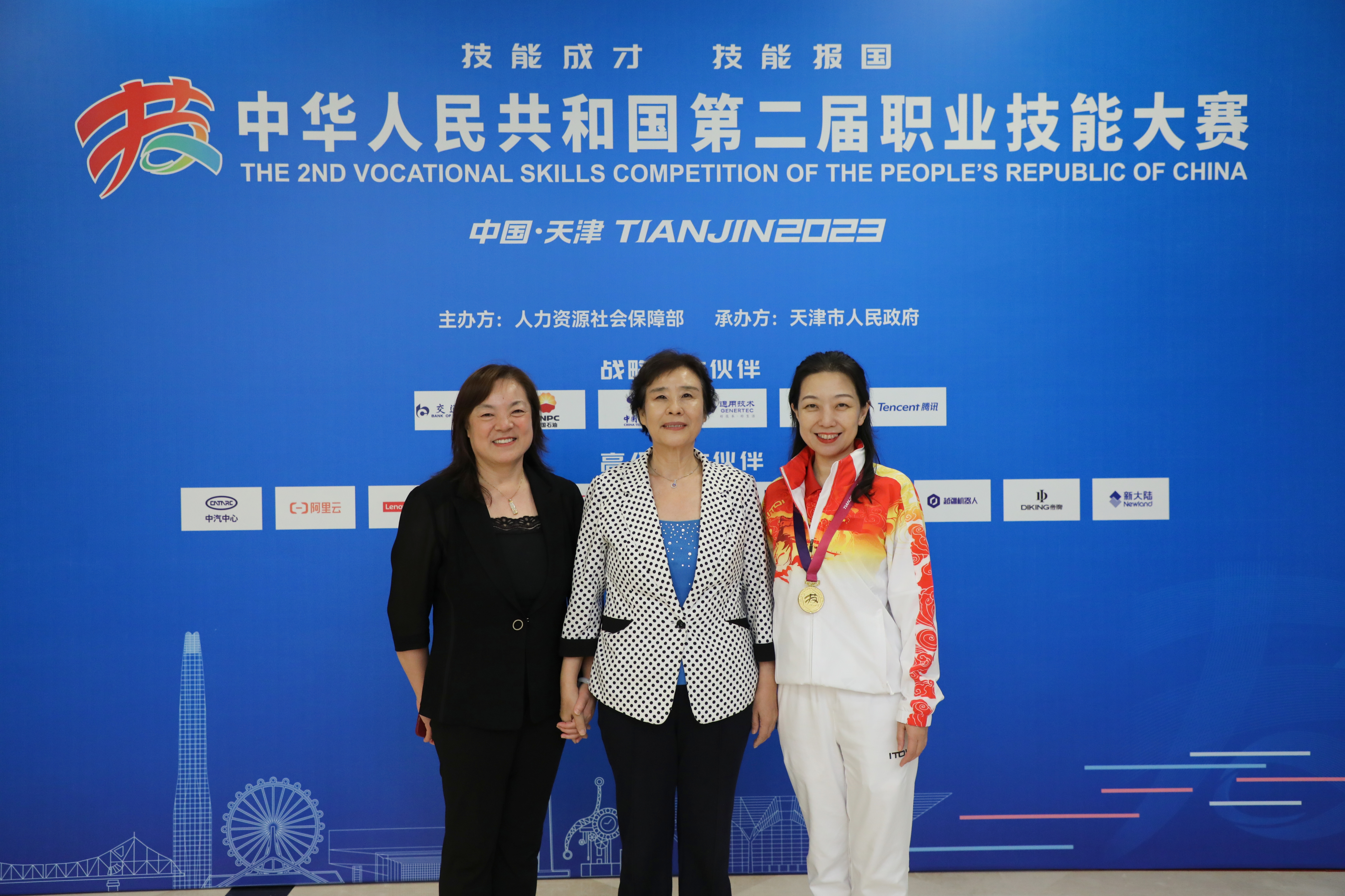 9月16日—9月18日,中华人民共和国第二届职业技能大赛在天津举行。beat365正版唯一官网必一教师李馨凭借丰富的训练实战经验、高超娴熟的技术和稳定的心态,出色地完成了比赛,一举获得健康照护赛项金牌。
