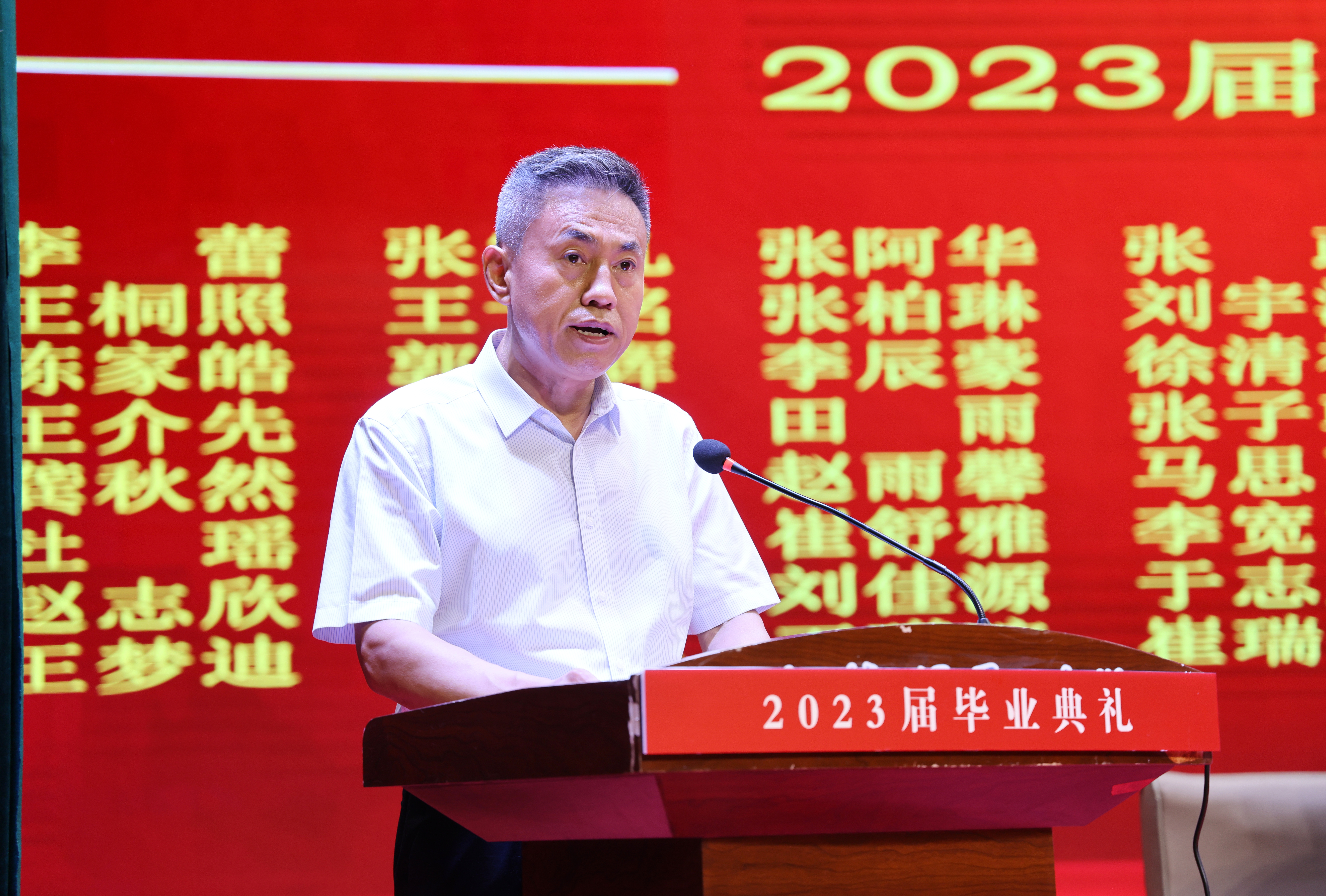 毕业典礼上,校长单伟颖为2023届毕业生致辞。她向顺利完成学业的全体毕业生表示热烈的祝贺,向悉心培养他们的老师、关心支持他们的家人致以最崇高的敬意和最衷心的感谢。并对全体毕业生提出了四点希望,一是希望同学们志存高远、勇于担当,要把个人的奋斗志向和学习进步,同国家民族的前途命运紧紧联系在一起、同实施健康中国战略和广大人民群众的生命健康紧紧联系在一起、同实现中华民族伟大复兴的中国梦紧紧联系在一起,自觉地砥砺奋斗、锤炼品格,彰显有志青年的担当与人生价值。二是希望同学们脚踏实地,善作善成,牢记“健康所系、性命相托”的铮铮誓言,脚踏实地,不浮躁、不急功近利,尊重科学、求真务实,从自身所从事的工作做起,从所在工作单位的岗位做起,从所承担的任务做起,一步一步的积累,一点一滴的奋斗,实现个人的人生价值。三是希望同学们开拓创新,勤于探索,切实担负起医学生的责任使用与担当,牢固树立终身学习的意识、追求卓越的勇气与“唯创新者进、唯创新者强、唯创新者胜”的豪气。在未来的职业生涯中,积极进取,开拓创新,不断地用自己不懈的实践与努力丰富人生的意义。四是希望同学们饮水思源,常怀感恩之心,感恩祖国、感恩社会,感恩父母、感恩家人,感恩同学、感恩朋友、感恩同事,在感恩与奉献中不断收获成长与快乐。