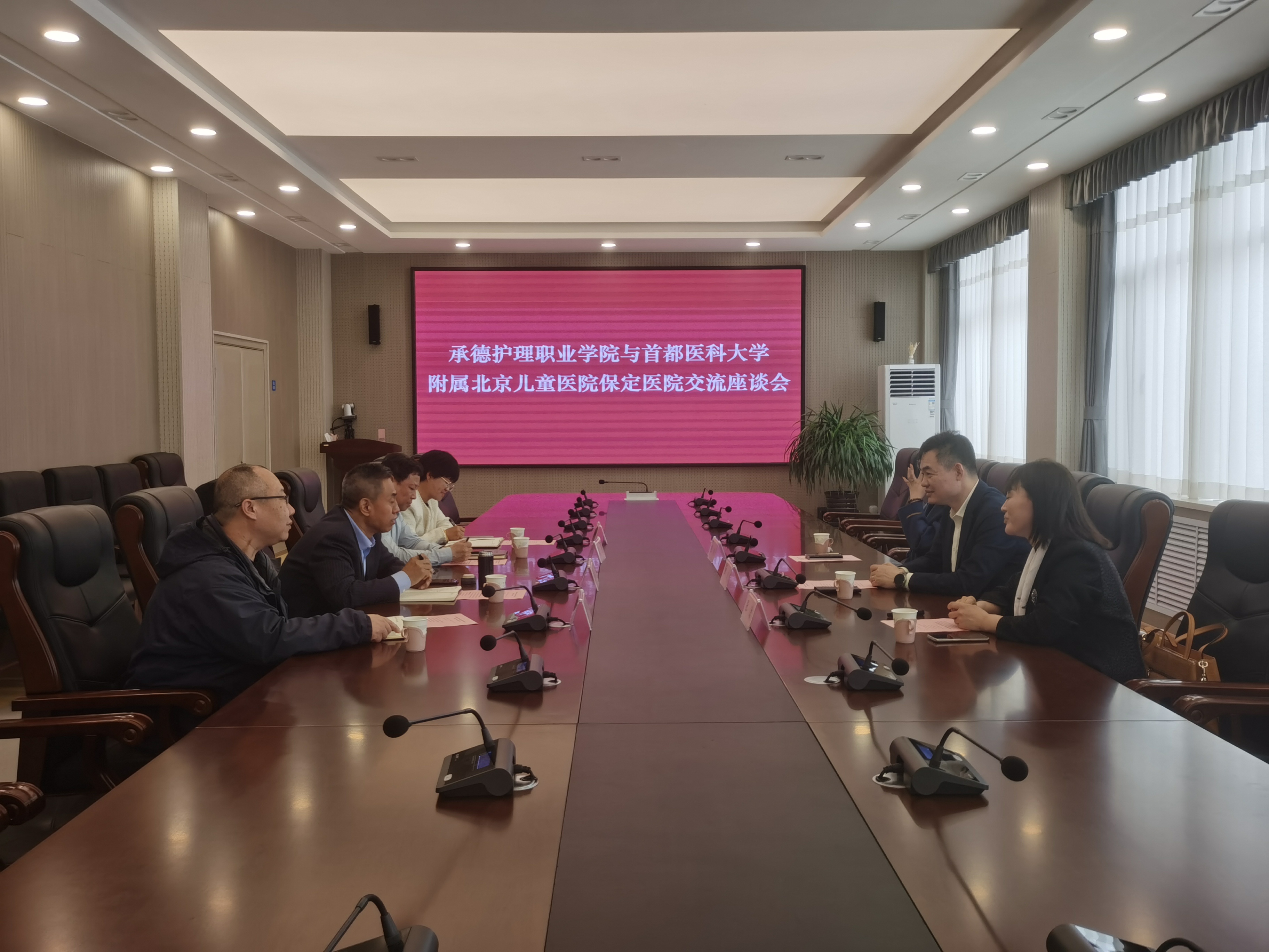 4月27日,首都医科大学附属北京儿童医院保定医院院长田剑、副院长张洁、科教科长张瑜一行三人来beat365考察,并召开交流座谈会。beat365副校长白兴武,实习与校企合作发展中心、护理系、医学系相关负责同志参加此次会议。
