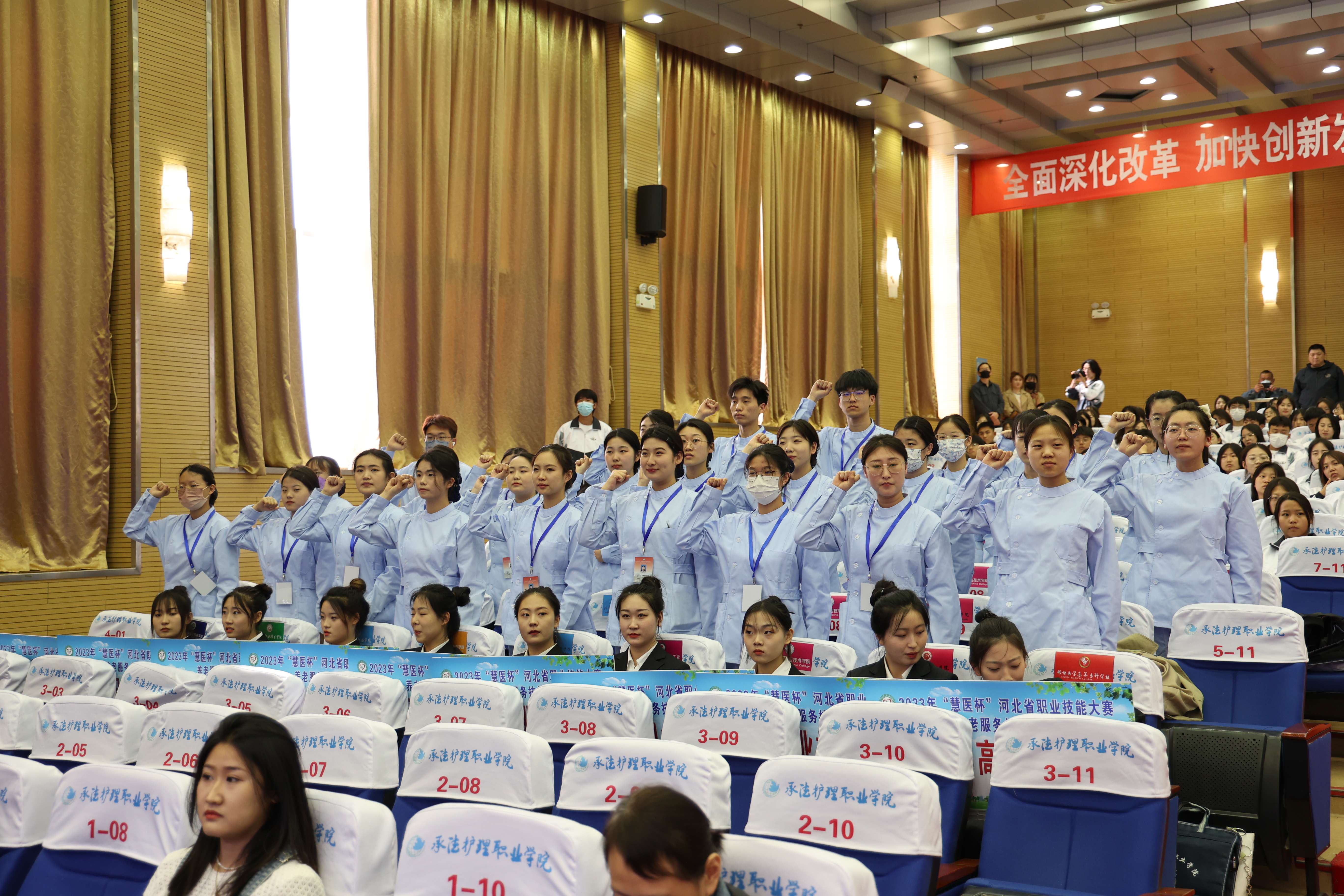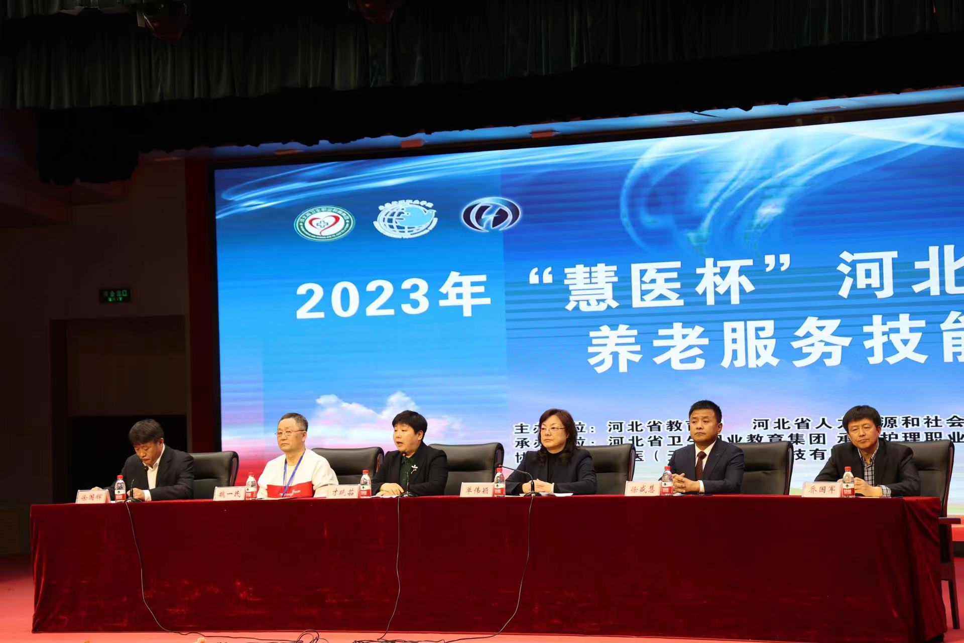 4月23日下午,由河北省教育厅、河北省人力资源和社会保障厅、河北省工业和信息化厅主办,河北省卫生职业教育集团和beat365正版唯一官网必一承办,慧医(天津)教育科技有限公司协办的2023年河北省职业院校技能大赛养老服务比赛在beat365临床护理实训中心隆重开赛,开幕式在学校3号教学楼五楼会议厅举行,学校党委副书记、校长单伟颖、河北省卫生职教集团理事长才晓茹、赛事仲裁组长、裁判长及省内外养老领域专家出席仪式。来自全省9所职业院校的参赛选手、指导老师、领队、裁判以及beat365护理专业、老年保健与管理专业师生参加开幕仪式。